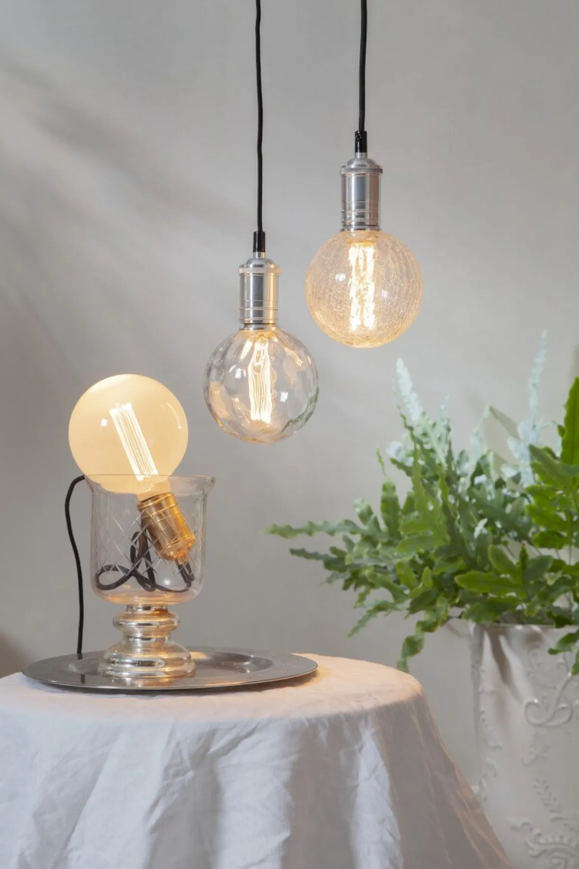 Klassisk design i kombination med energisparande teknik skapar New Generation Classics ljuskällor från Star Trading. Dessa ljuskällor har varmvitt sken (2000K) och dekorativt bubbligt glas.