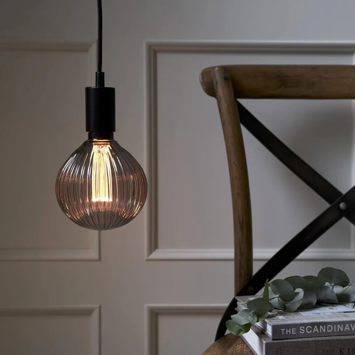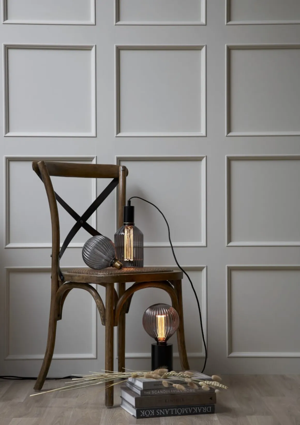 Läcker LED-lampa med rökfärgat glas från Star Trading. Denna ljuskälla ger ett mysigt och varmt mjukt sken. Lämpar sig ypperligt för dekorationsbelysning och passar perfekt i upphäng, eller lampfötter med E27 sockel. Hittar sin självklara plats över såväl soffbord, bardisk som över en matsalsmöbel.
