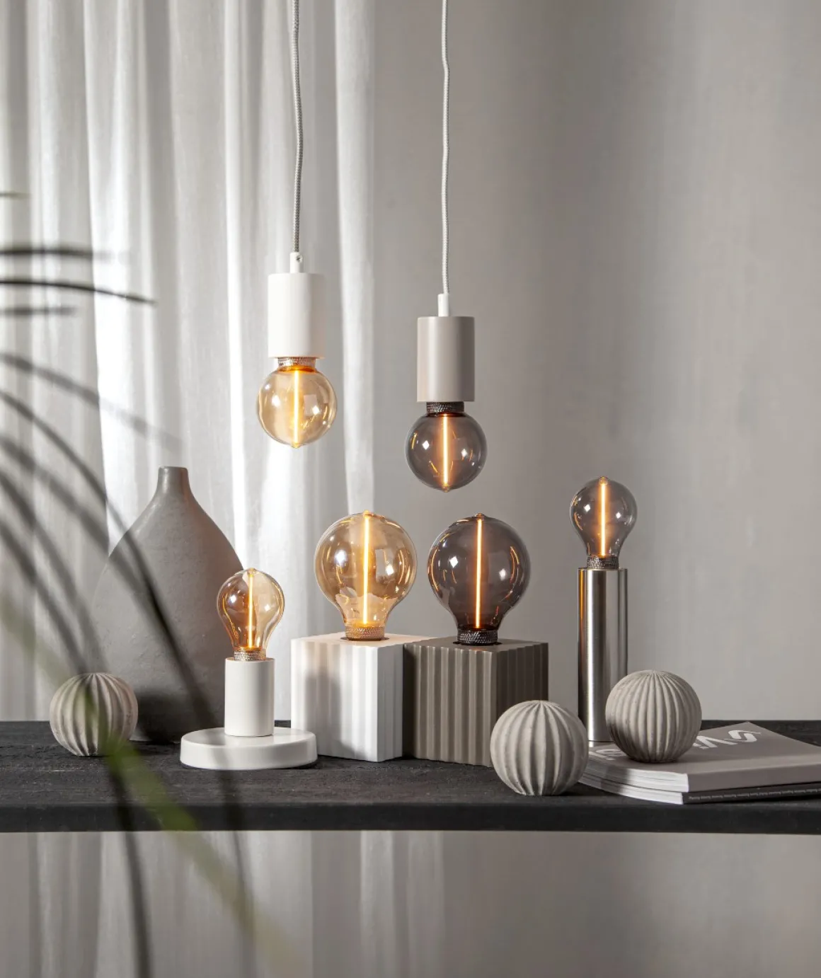 Amberfärgad ljuskälla av modell glob 80 från Star Trading med 3-stegs klickdimring! Ljusstyrkan ändrar du enkelt genom att slå av och på strömbrytaren. Välj mellan 20lm, 50lm eller 100lm. Ljusfärgen är 1800K och sockeln är E27. Minnesfunktion gör att ljuskällan startar på senast valda ljusstyrka.