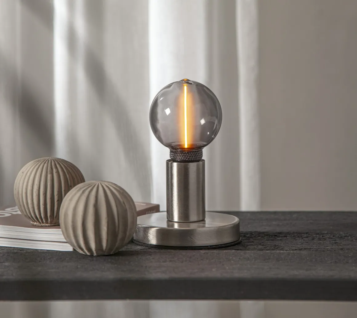 Rökfärgad ljuskälla av modell glob 80 från Star Trading med 3-stegs klickdimring! Ljusstyrkan ändrar du enkelt genom att slå av och på strömbrytaren. Välj mellan 10lm, 30lm eller 60lm. Ljusfärgen är 1800K och sockeln är E27. Minnesfunktion gör att ljuskällan startar på senast valda ljusstyrka.