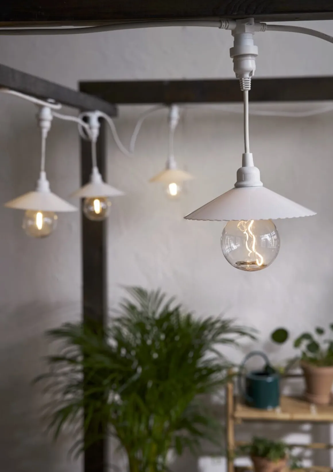 En vacker ljuskälla för både inomhus- eller utomhusbruk. Denna PC Cover lampa är perfekt att använda i din slinga för att lysa upp din balkong, uteplats, pergola eller i partytält.Med ett ytterhölje av plast som håller bättre i lite tuffare miljöer och om du har husdjur eller barn. Ingen risk för glassplitter. Färgtemperaturen på varma 2200K och ljusstyrkan på 80lm ger det perfekta mysljuset.