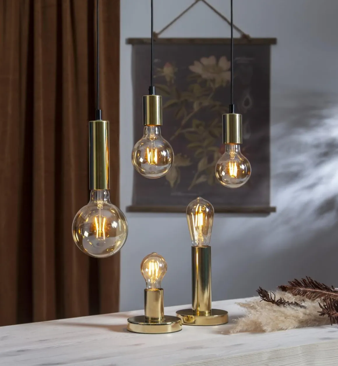 Dekoration LED-lampa med amberfärgat glas som sprider härligt varmvitt sken. Lampan har E27-sockel.