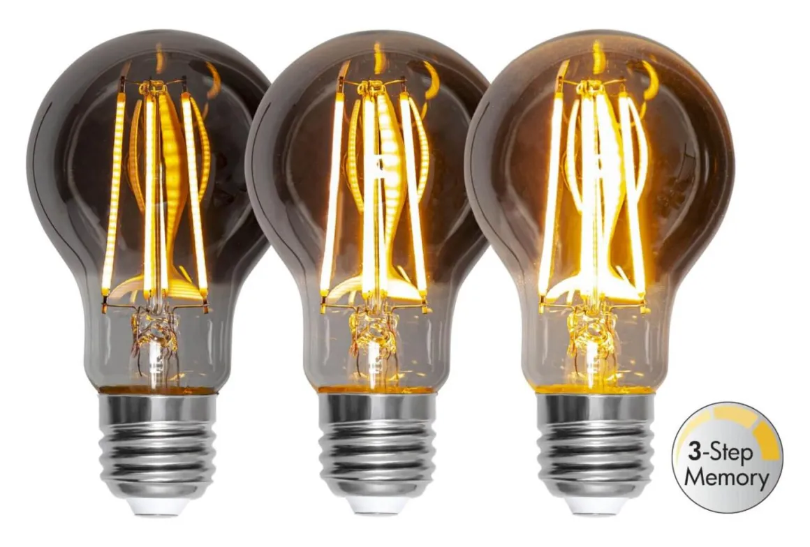 Ljuskälla av modell normallampa från Star Trading med 3-stegs klickdimring! Ljusstyrkan ändras enkelt genom slå av och på strömbrytaren. Välj mellan 40lm, 130lm eller 260lm. Ljusfärgen är 2200K och sockeln är E27. Minnesfunktion gör att ljuskällan startar på senast valda ljusstyrka.