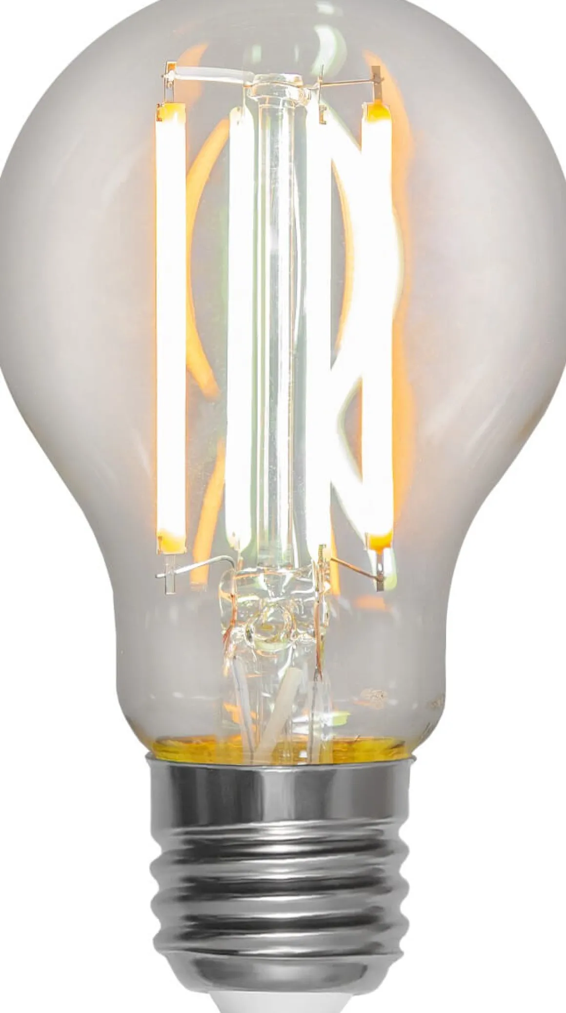 Led ljuskälla modell Normallampa med klart glas och E27 sockel med super duper smarta funktioner med hjälp av appen Smart Life. Ljuset kan du ändra från varma 2700K upp till 6500K, allt beroende på vilket humör du är på för stunden. Den ger ett jämnt vackert ljussken. Ljusstyrkan är på 806 lumen som starkast och den kan enkelt ändras i appen. Du kan också enkelt tända eller släcka din lampa med hjälp av appen Smart Life. I appen kan du även lägga in scheman för när du vill att din lampa skall vara tänd enkelt och energismart. Dessa smarta lampor kan även integreras med produkter från Google Home eller Amazon Alexa. Kom igång genom att ladda hem appen, logga in eller skapa ett konto och anslut din ljuskälla – lätt som en plätt!