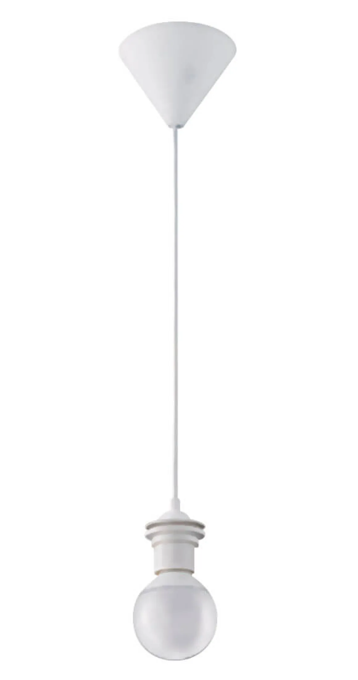 Upphäng i plast med E27 sockel med skärmringar helt enkelt 🙂 Ljuskälla ingår ej.