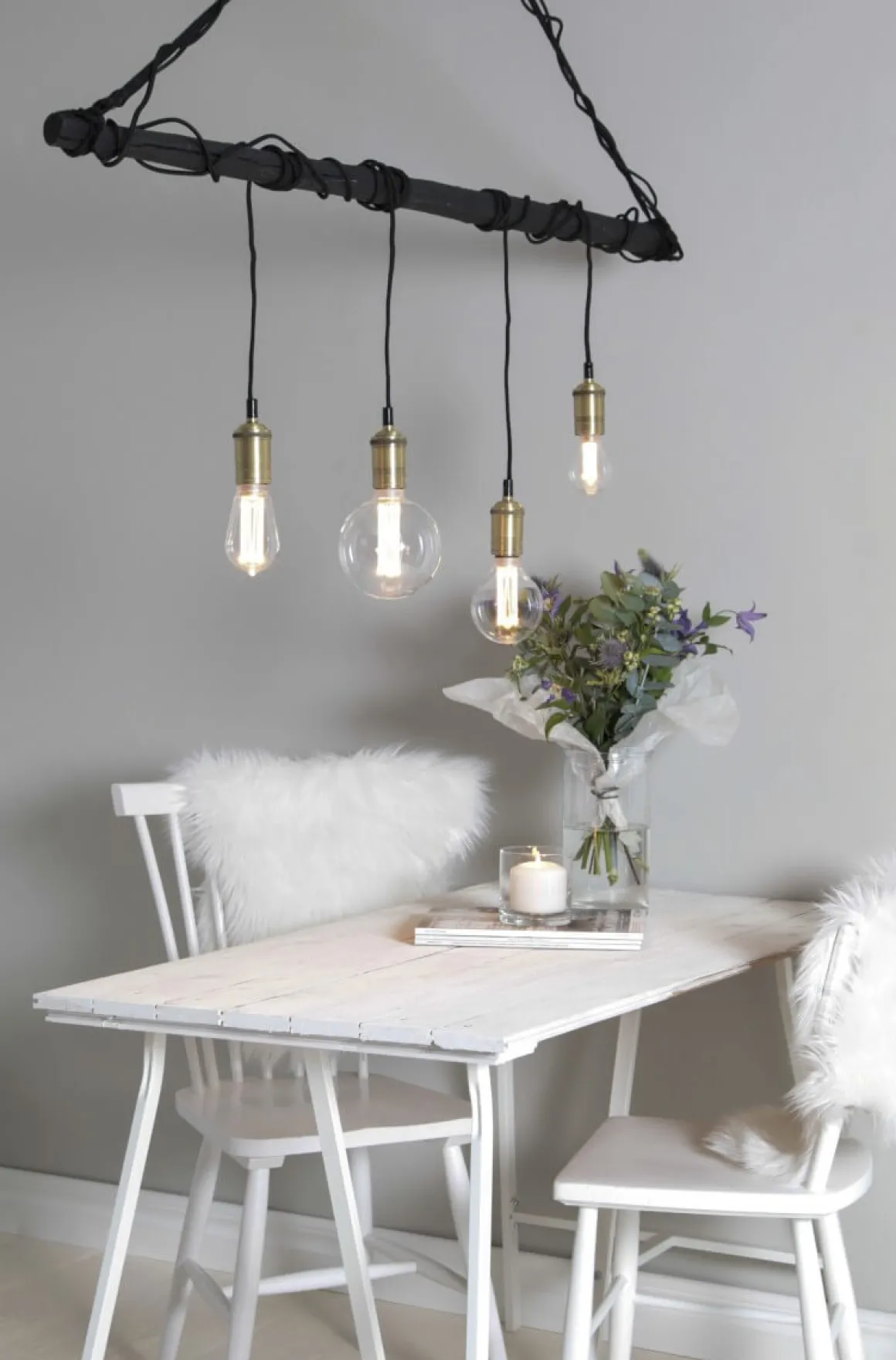 Läckert upphäng med 3,5 meter svart textilkabel med en lamphållare i oxid som verkligen lyfter rummet, kombinera med en cool ljuskälla för bästa effekt.