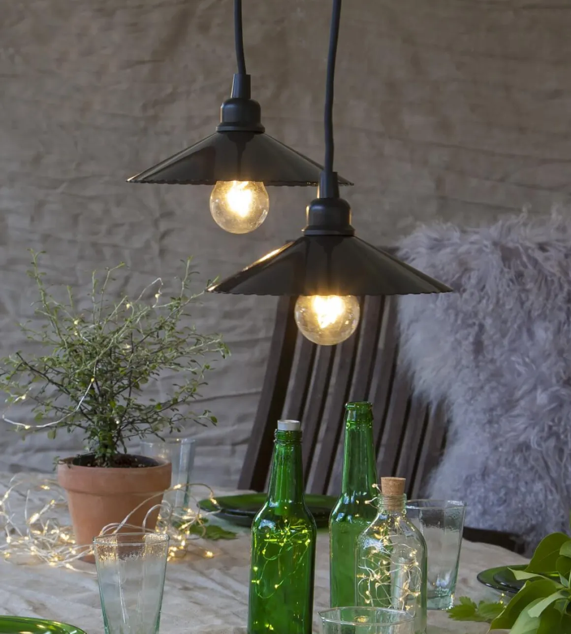 Sladdställ för utomhusbruk med 5m svart gummikabel. Kombinera med en snygg ljuskälla. För E27 sockel.