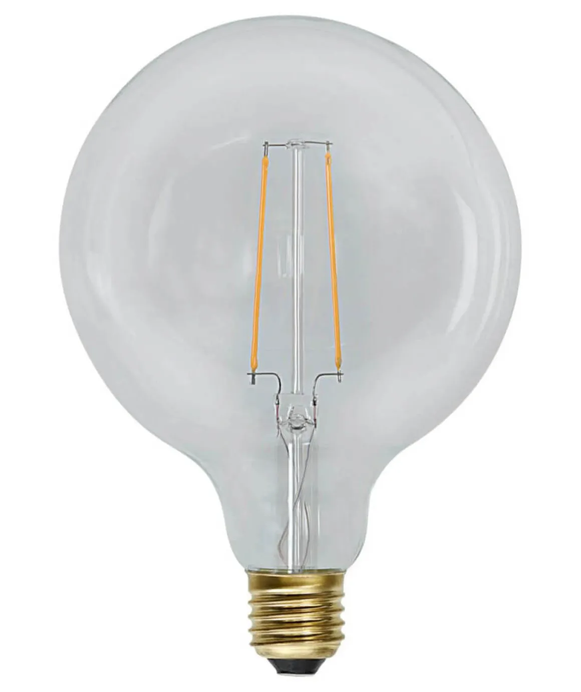 Dekorativ LED globlampa. Den har varmvitt sken där färgtemperaturen är 2100K och ljusflödet på 230 lumen Sockeln är E27.