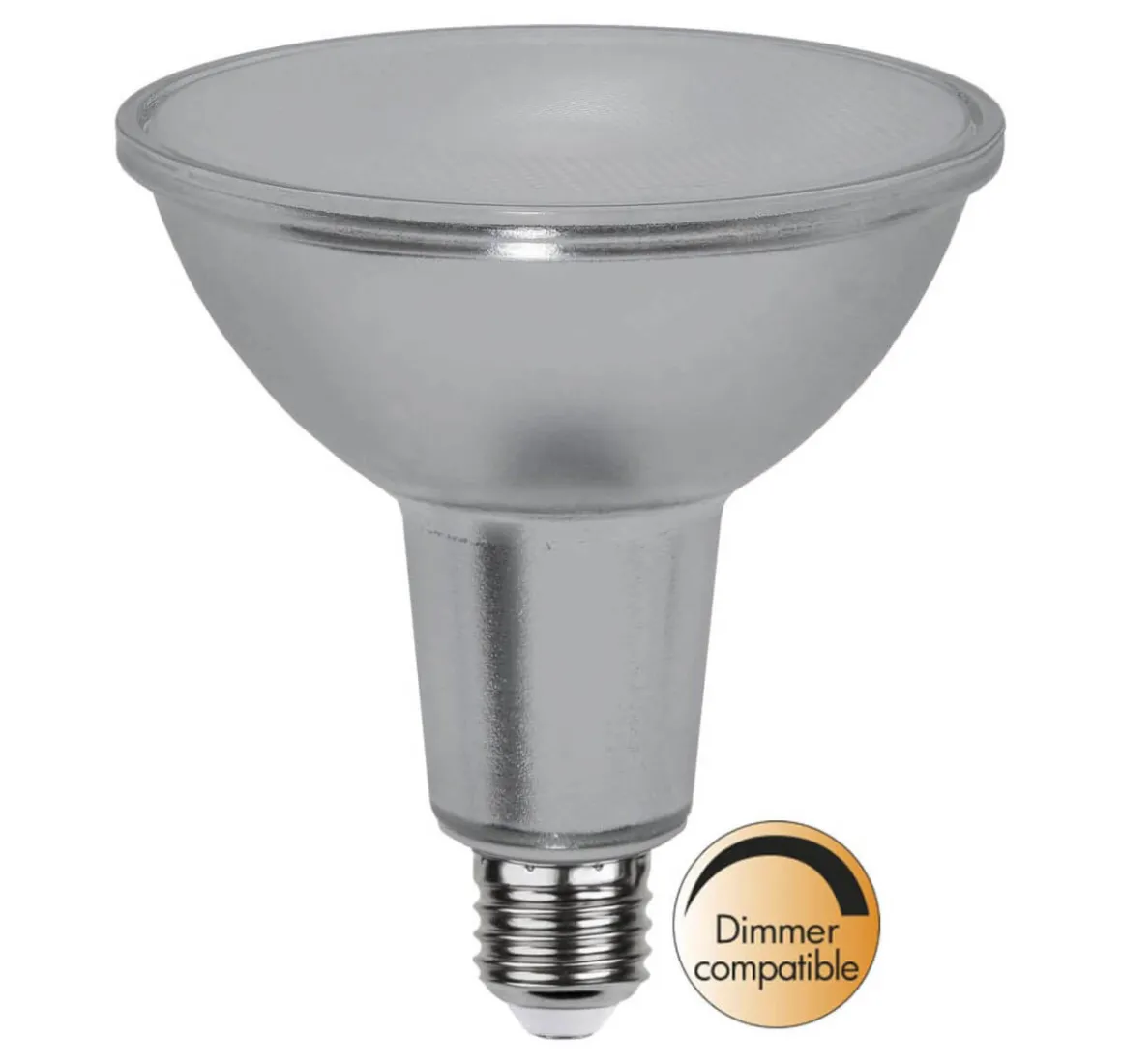 Dimmerkompatibel spotlight med E27-Sockel med en färgtemperatur på 2700K och ett ljusflöde på 1000 Lumen