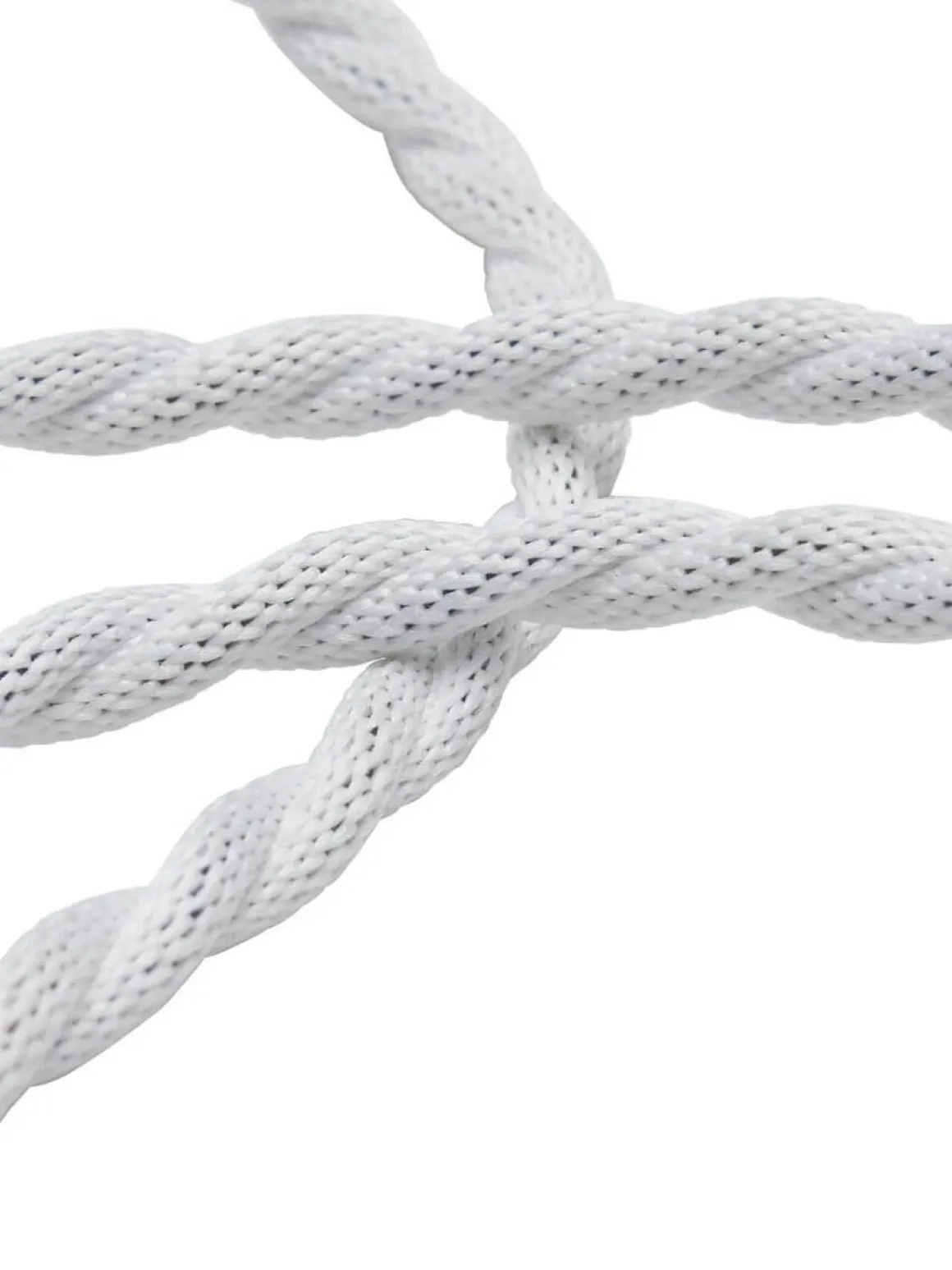 Takupphänge med tvinnad vit textilsladd från PR-Home 1,2m lång, vit E27 lamphållare med ringfäste, vit takkopp och en kopplingsplint. Takkontakt ingår ej.
