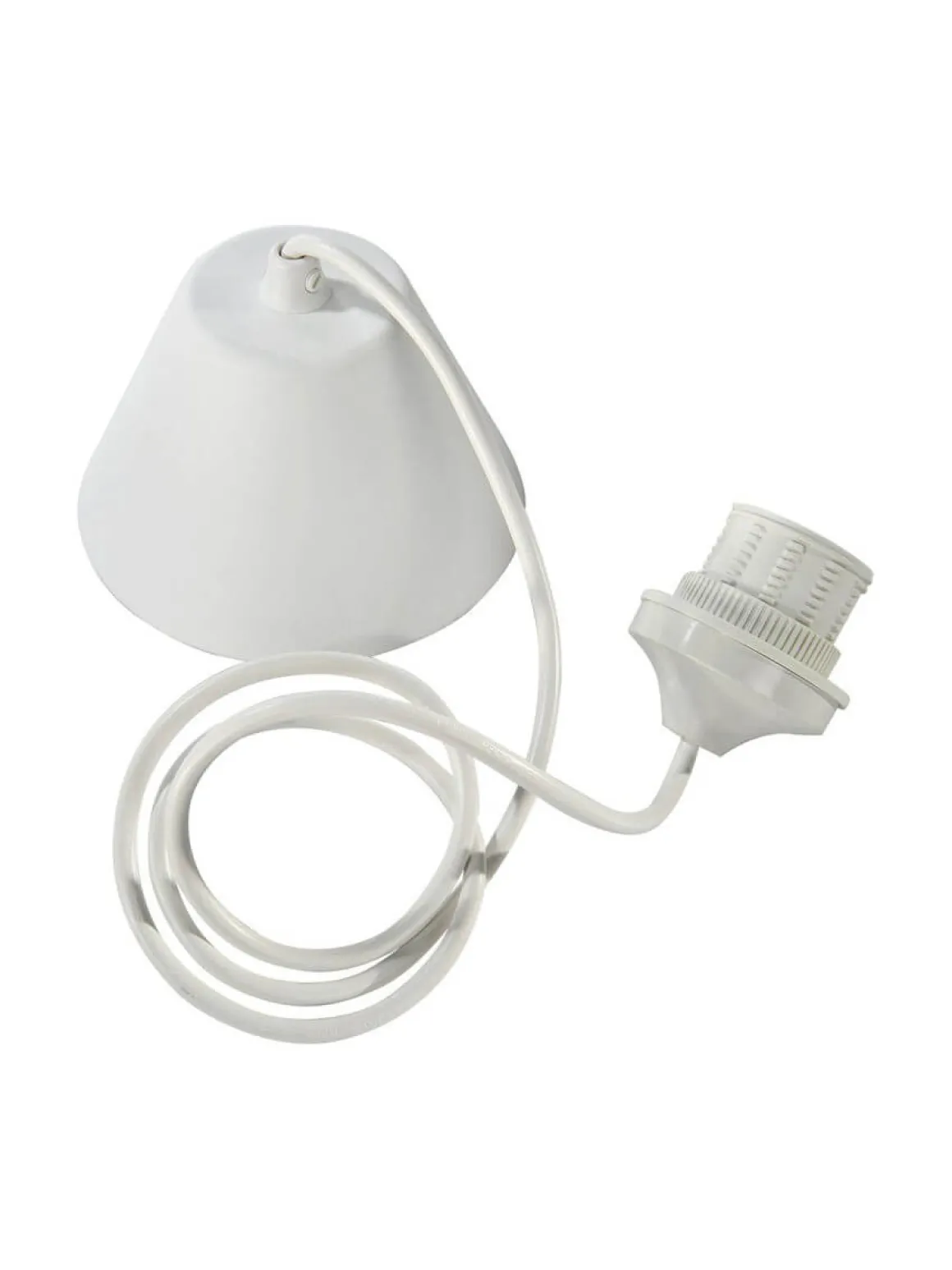 Vitt takupphäng som har 1,2 meter lång kabel och ett E27 ringfäste. Med kopplingsplint från PR-Home