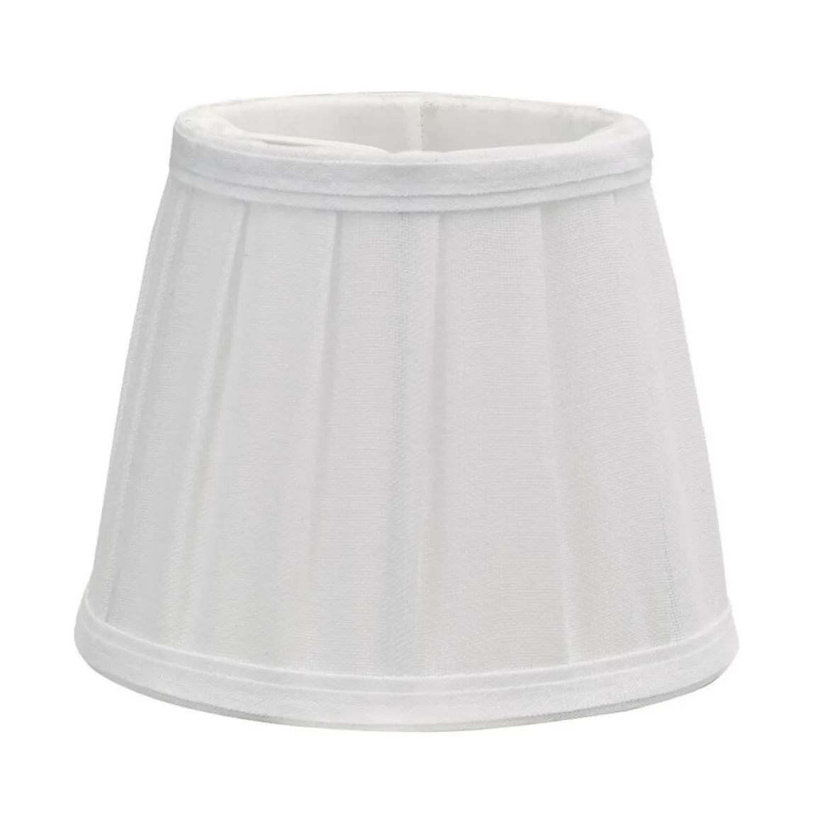 Vit fodrad svagt plisserad/veckad skärm med vit insida i Linnetyg från Oriva med klofäste. Emily finns i 3 storlekar, här ser du den minsta.
