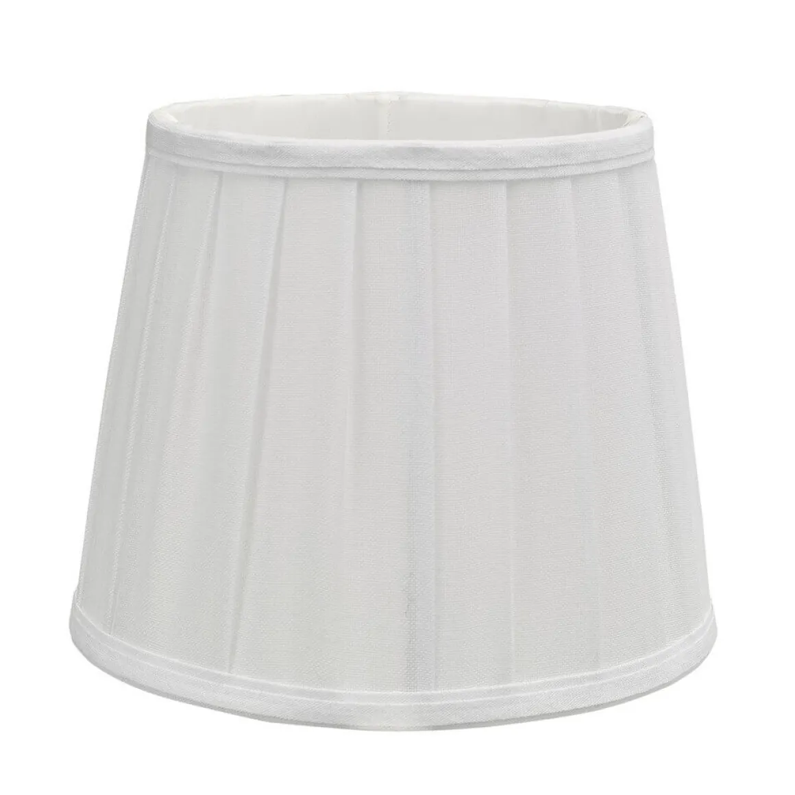 Vit fodrad svagt plisserad/veckad skärm med vit insida i Linnetyg från Oriva med klofäste. Emily finns i 3 storlekar, här ser du den största.
