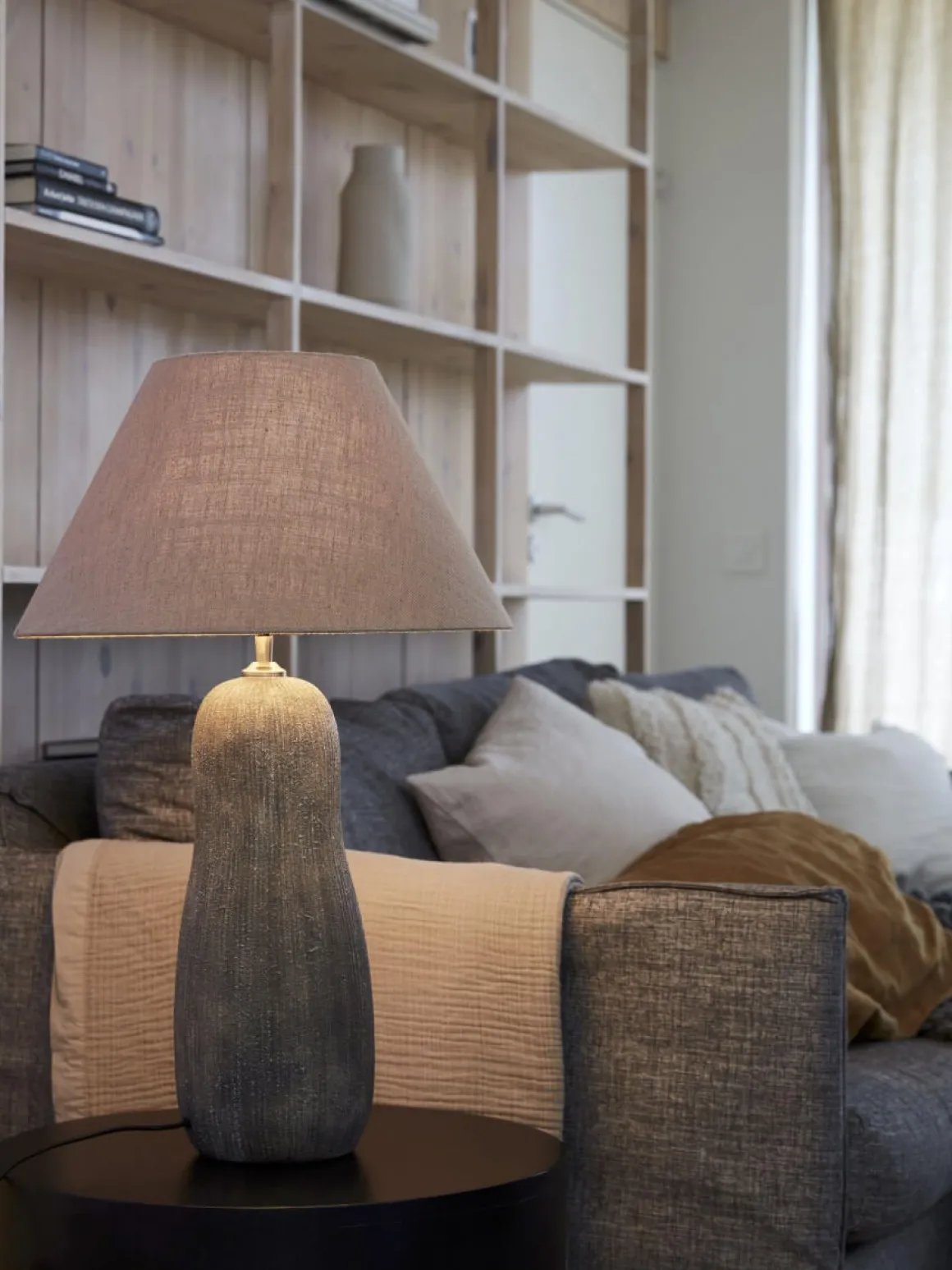Empire är en klassisk lampskärms serie från PR-home som finns i flertalet storlekar och färger i materialen bomull eller Lin, här ser du Empire 50 cm i tyget Florenzo Stone.