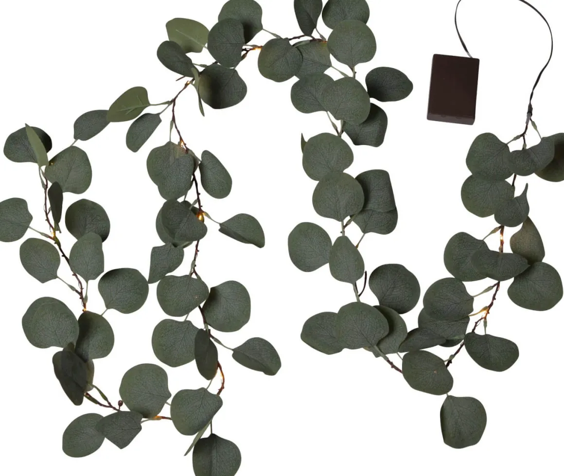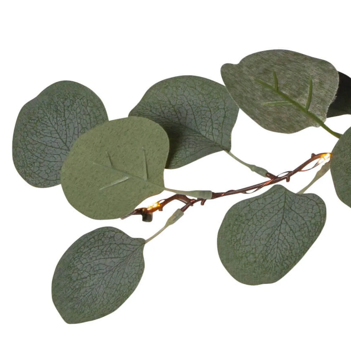 Vacker dekorationsgirlang pyntad med eukalyptus blad runt en härlig dew drop slinga på 180 cm. Perfekt att ha som bordsdekoration.