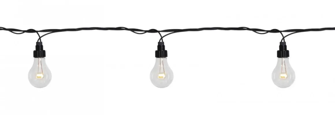 System LED är vårt premiumsystem för större och hållbara dekorationer. Alla system LED Produkterna har en lång livslängd och ger ett kraftigare ljussken. Party slinga med 10 klara plasthöljen formade som lampor, extra enhet.