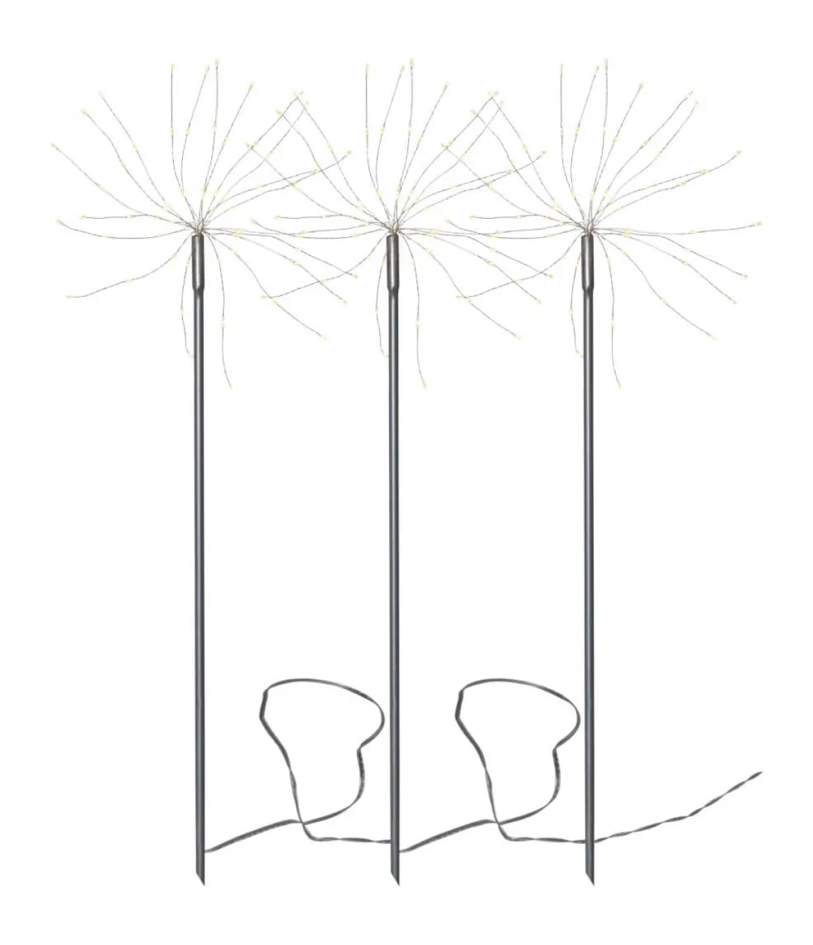 Den vackra Firework familjen har utökats med ett par nyheter i år, bland annat denna! Det är inte svårt att se varför firework är så populär, en härlig belysning med många ljuspunkter som blir ett säkert blickfång i din trädgård. Här med silverfärgad stomme och varmvita lampor. 3 pinnar med en meter mellan varje, vackert!