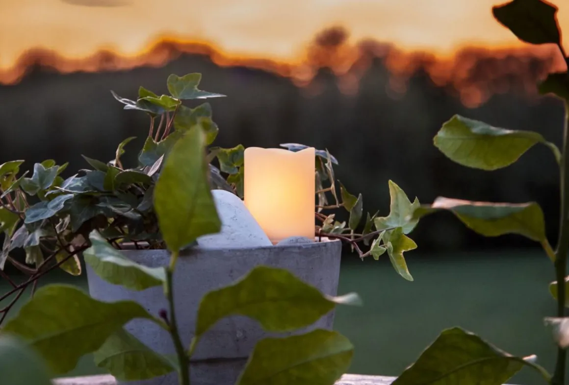 Dekorationsljus i plast för utomhusbruk med en flammande liten låga inuti, självklart med inbyggd timer.