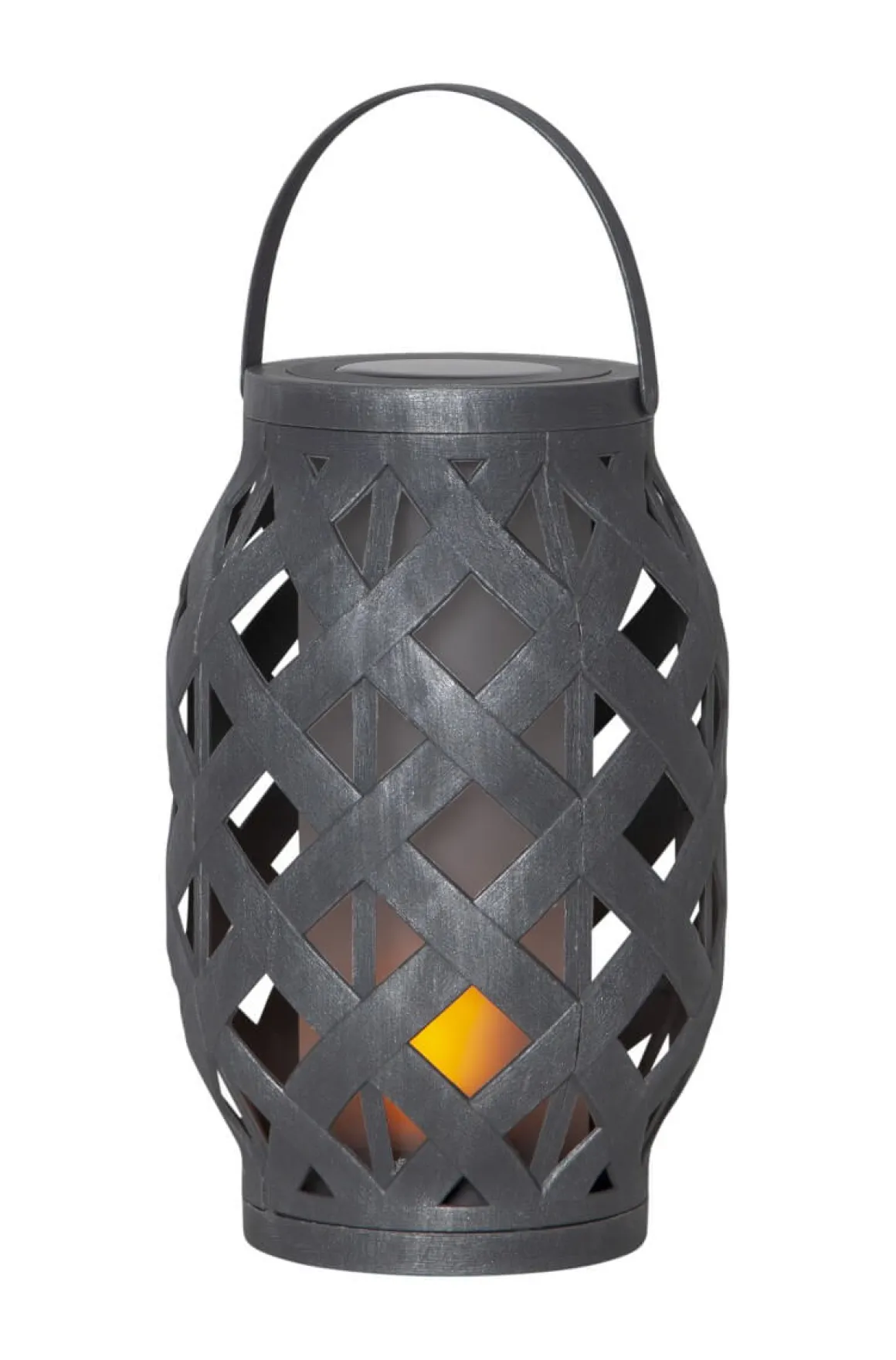 Tjusig lykta från Star Trading men flammande låga inuti, laddas av solens varma strålar för att sedan lysa upp i sommarnatten i din trädgård.