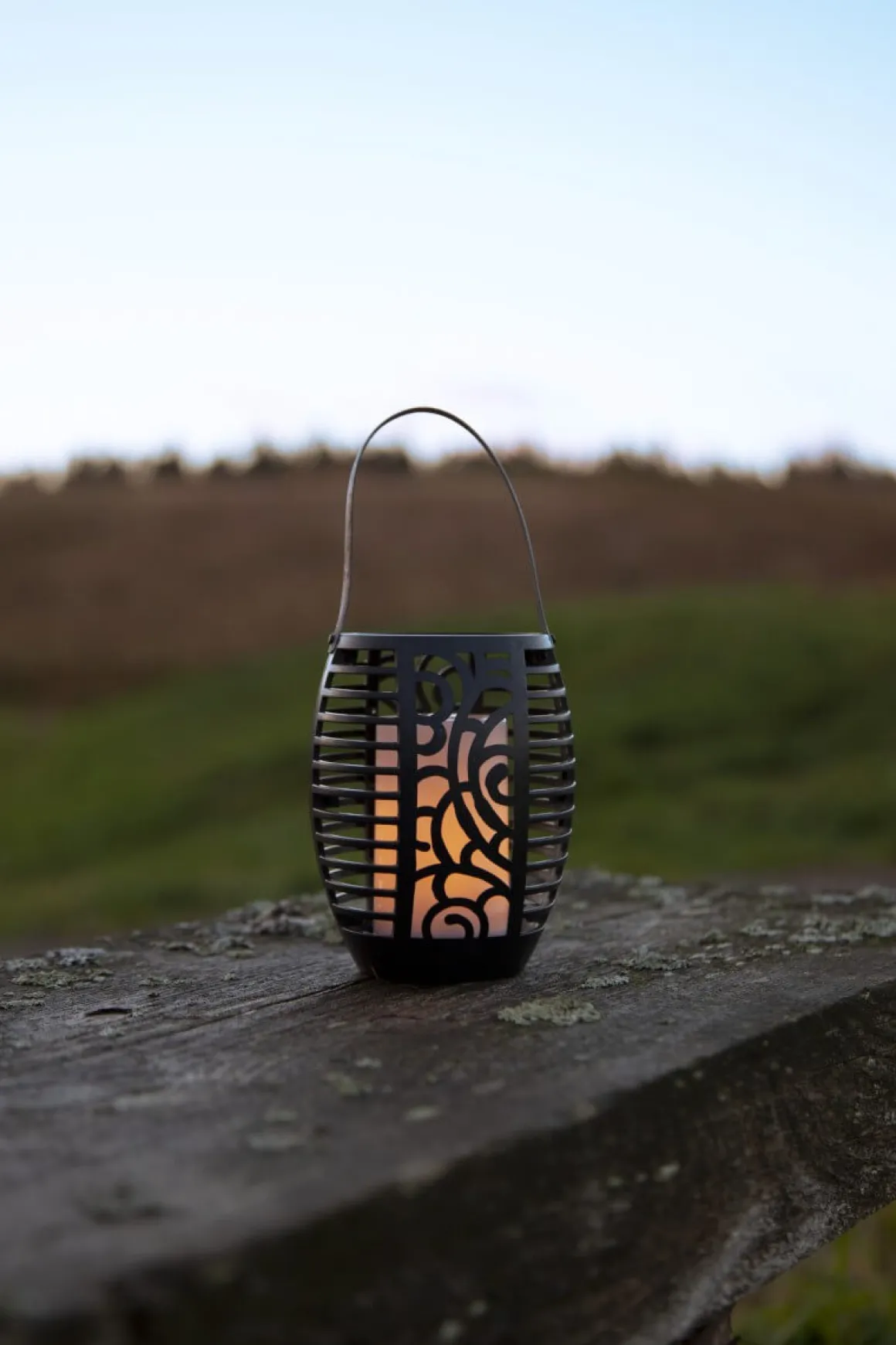Härlig solcellsdekoration med Flammande ljus, så läckert! Denna kan du dessutom ha på tre olika sätt. Som mini pollare, hängande eller som bordslykta. Fantastiskt!