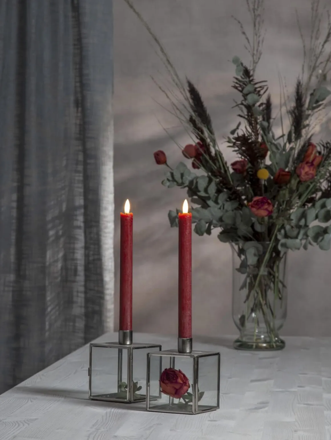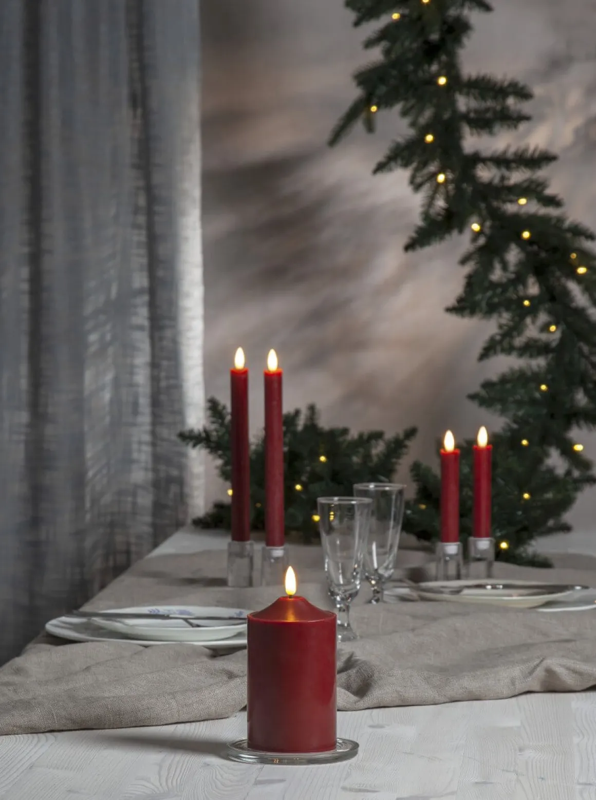 Härliga Flammeljusen nu äntligen i en läcker mörkröd färg! Vårt i särklass mest naturtrogna dekorationsljus. Självklart med inbyggd timer så du enkelt kan ställa in när du vill att den ska lysa.