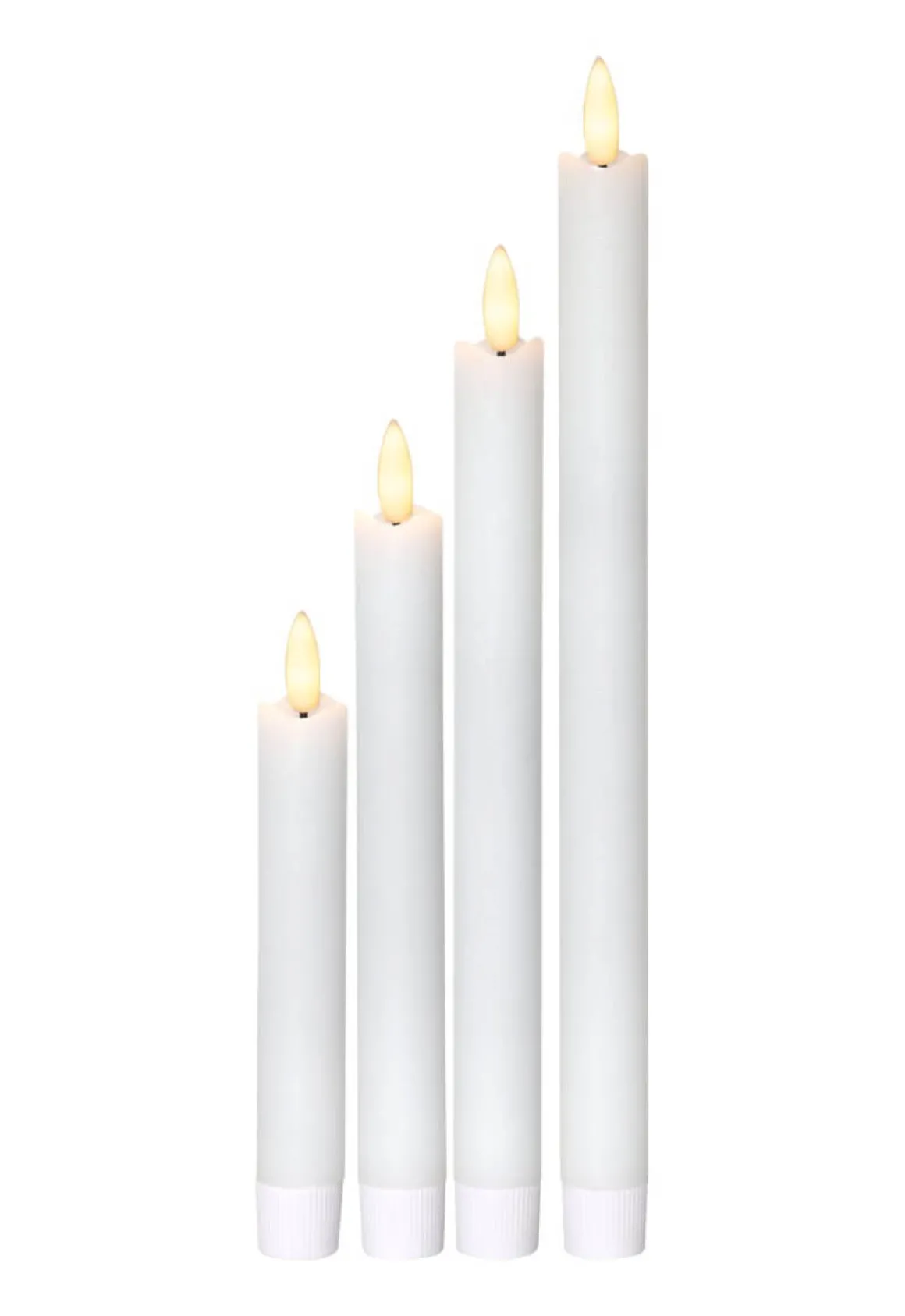 Wohooo ett helt set med Flammeljus i varierande storlekar, perfekt för den asymmetriska dukningen eller varför inte adventsljusstaken? Alla ljusen drivs med AAA batteri och styrs enkelt med den inbyggda timern.