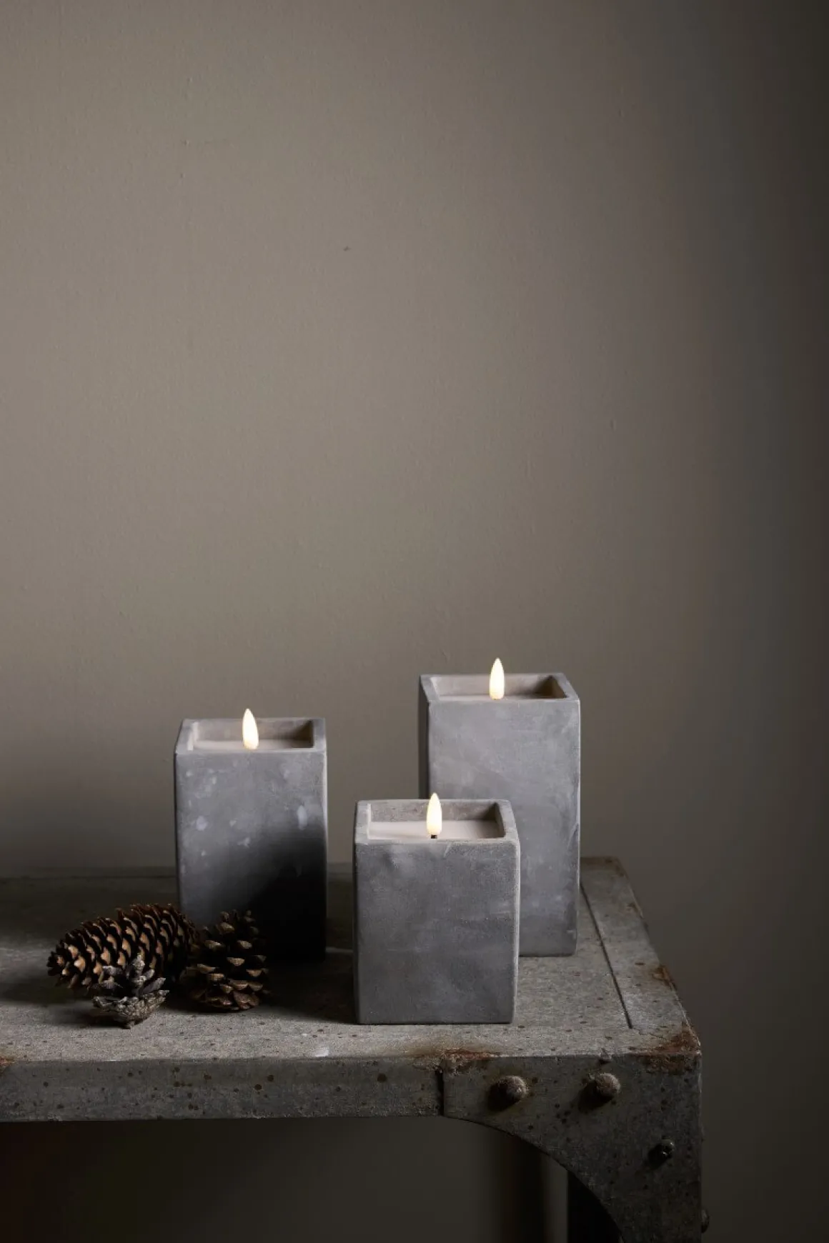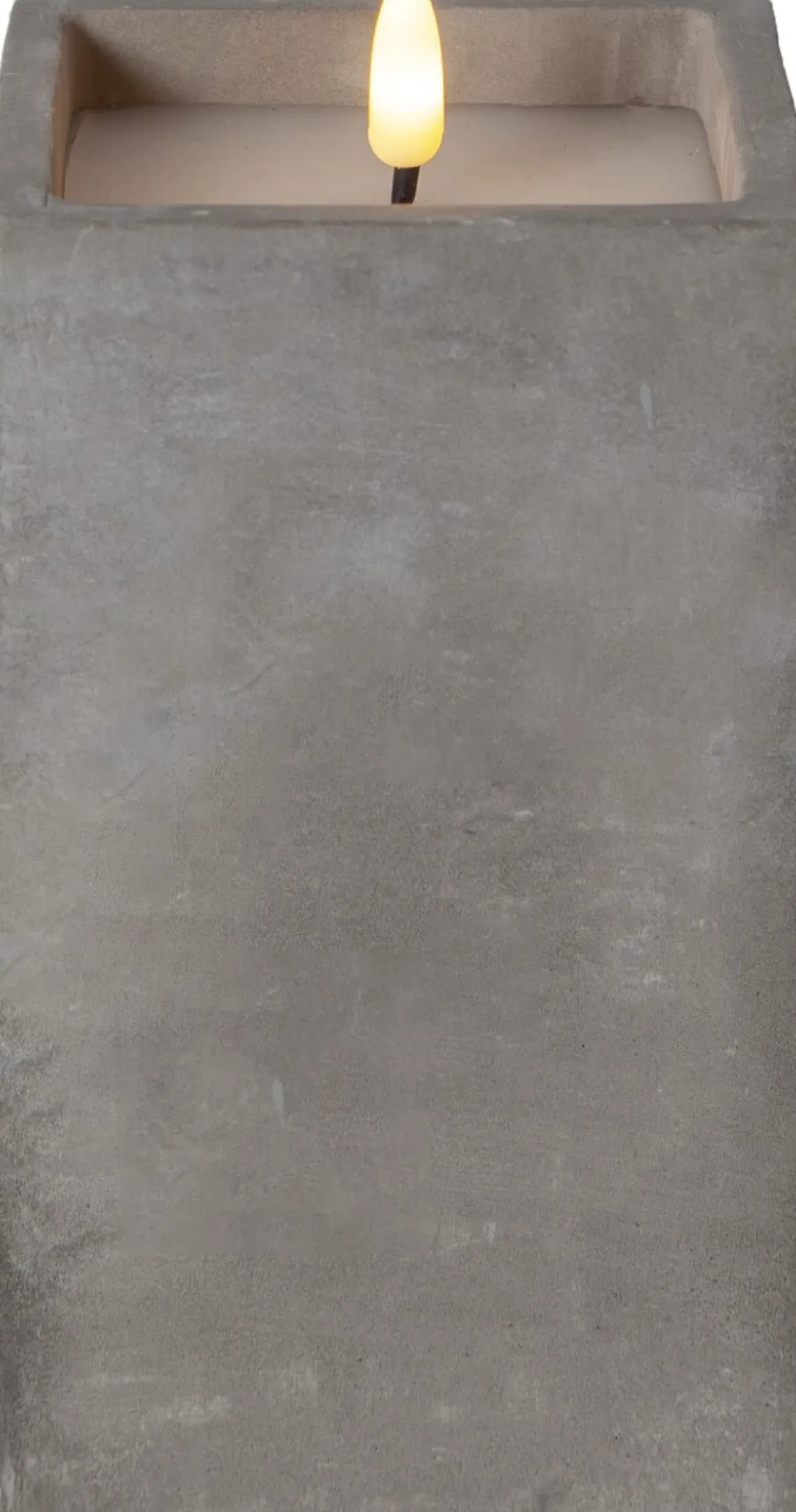Det fullkomligt ramlar in fler och fler modeller på dekorativa ljus i Flamme serien – Underbart! Den senaste i mängden är detta läckra ljus med en härligt tuff yta i cement. En stilren batteridriven dekoration med den populära verklighetstrogna Flamme lågan. Flamme cem finns i 3 höjder och här ser du den minsta med en höjd på 16,5 cm. Drivs med 2 AA Batterier (ingår ej).