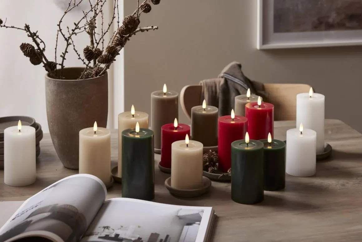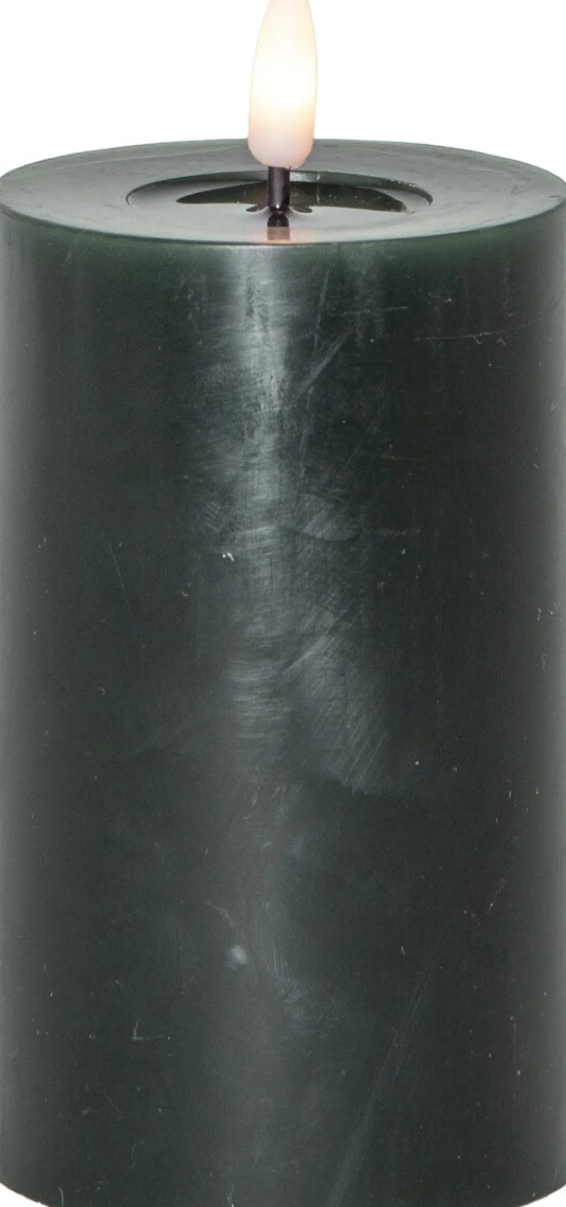 Flamme Flow är ett batteridrivet blockljus med Star Tradings naturtrogna låga Flamme. Detta stearinljus har en blank nedsänkning under lågan vilket gör att denna yta ser ut som flytande vax för en mer äkta känsla.Detta ledljus blir en vacker dekoration, både ensam och i grupp ihop med övriga ljus från Flamme serie. Den har timerfunktion på 6 timmar och när brytaren är på timerläget lyser ljuset i ca 30 dagar med en vacker realistisk låga i varmvitt. Flamme Flow finns i 3 olika höjder och en rad olika färger här ser du den mellersta på 15 cm i Grönt. Den drivs av 2 AA batterier, dessa ingår ej.