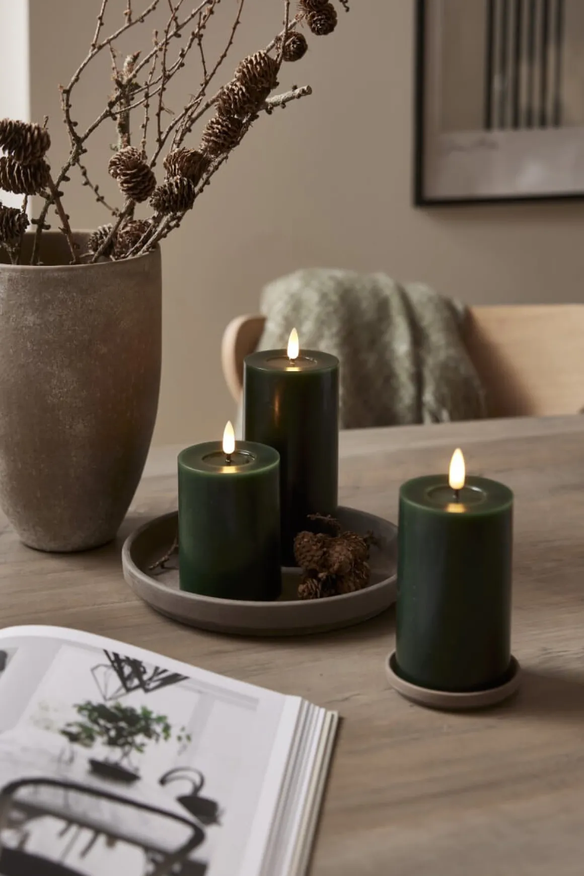Flamme Flow är ett batteridrivet blockljus med Star Tradings naturtrogna låga Flamme. Detta stearinljus har en blank nedsänkning under lågan vilket gör att denna yta ser ut som flytande vax för en mer äkta känsla.Detta ledljus blir en vacker dekoration, både ensam och i grupp ihop med övriga ljus från Flamme serie. Den har timerfunktion på 6 timmar och när brytaren är på timerläget lyser ljuset i ca 30 dagar med en vacker realistisk låga i varmvitt. Flamme Flow finns i 3 olika höjder och en rad olika färger här ser du den högsta på 17,5 cm i Grönt. Den drivs av 2 AA batterier, dessa ingår ej.