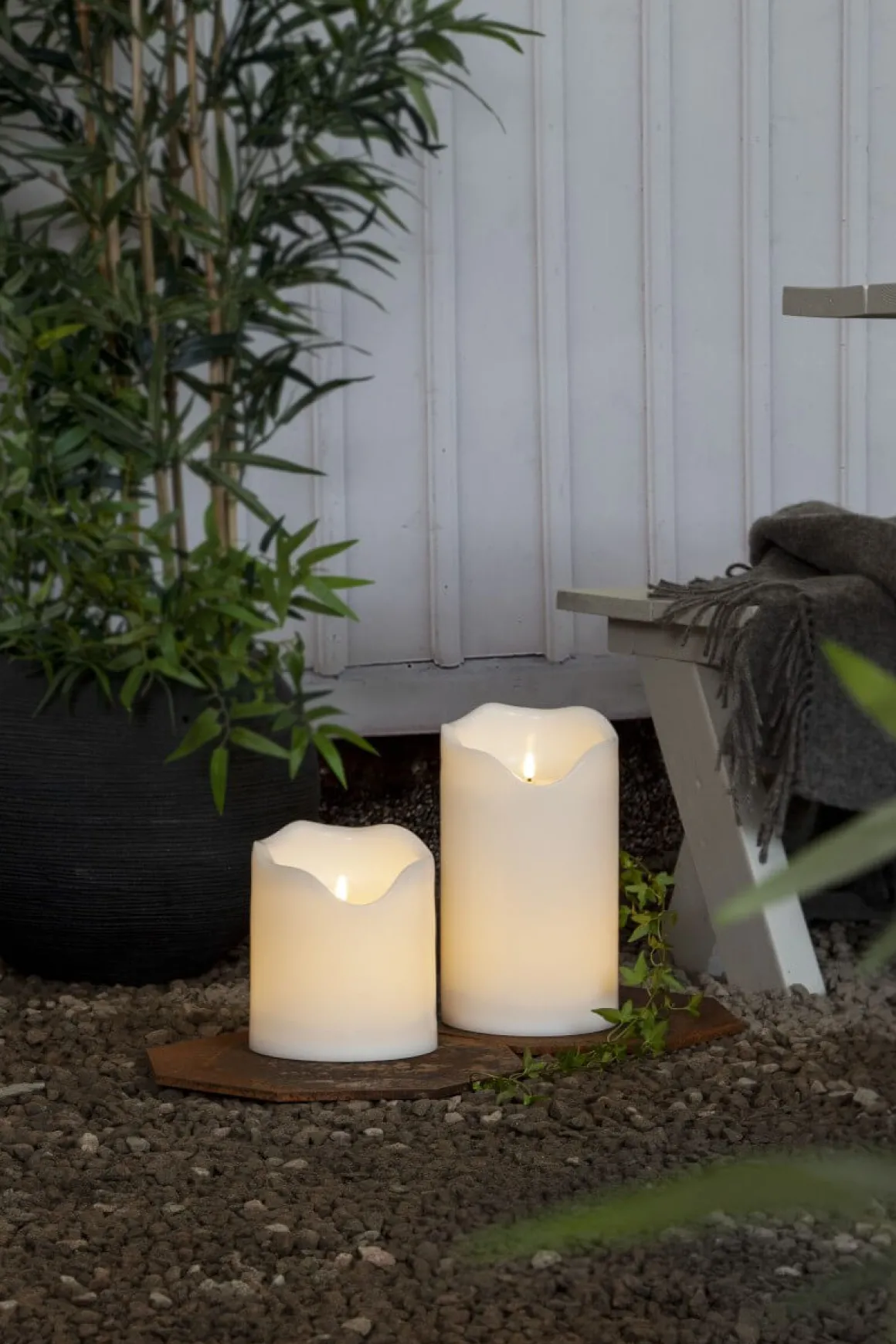Ni är många som efterfrågat batteriljus modell större, här har vi dem Flamme Grand är stora blockljus avsedda för inom och utomhusbruk. Här ser du stora Grande på 30 cm.