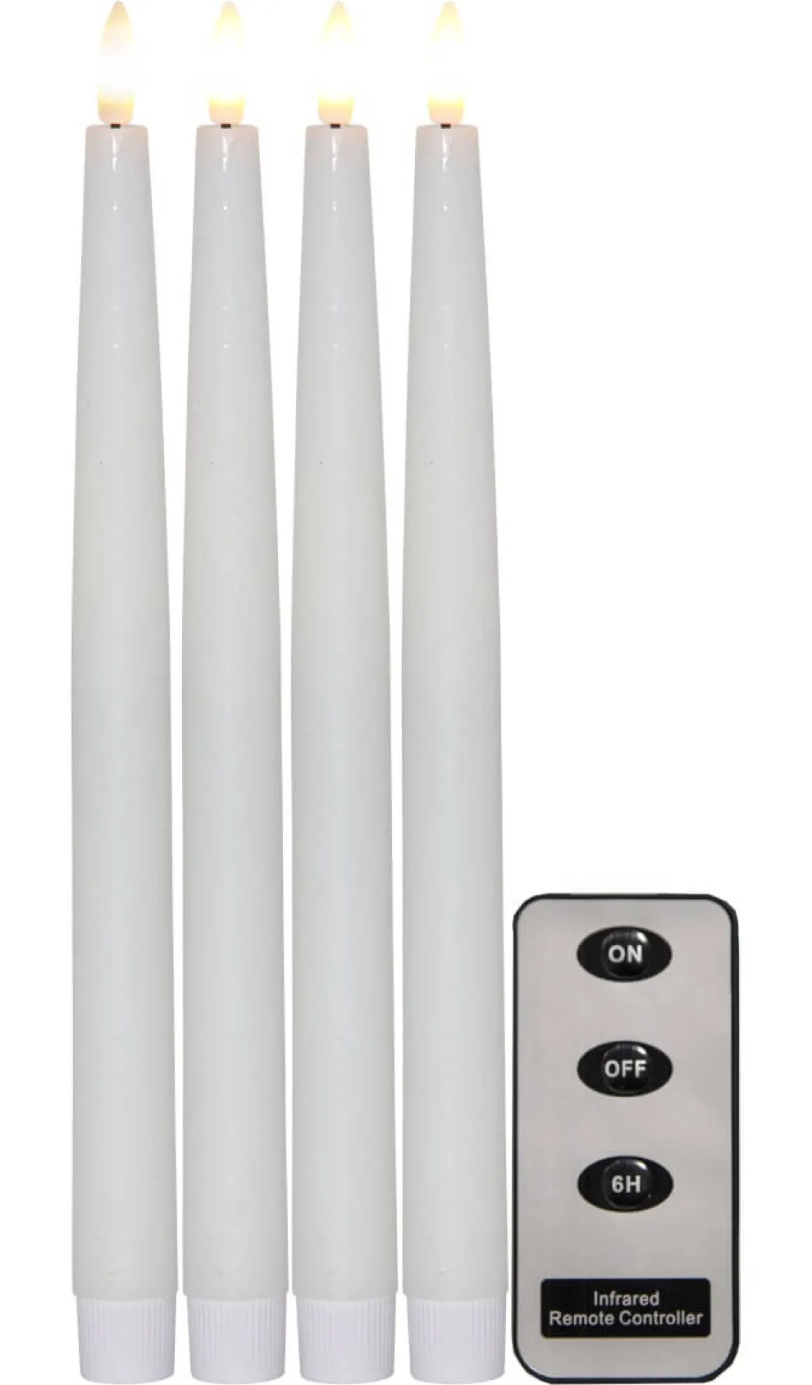 Den populära otroligt verklighetstrogna serien Flamme är nu här i en ny modell med svagt konad form. Detta fyrpack med stora antikljus levereras dessutom med en fjärrkontroll så du enkelt själv kan styra över när du vill att de ska lysa.