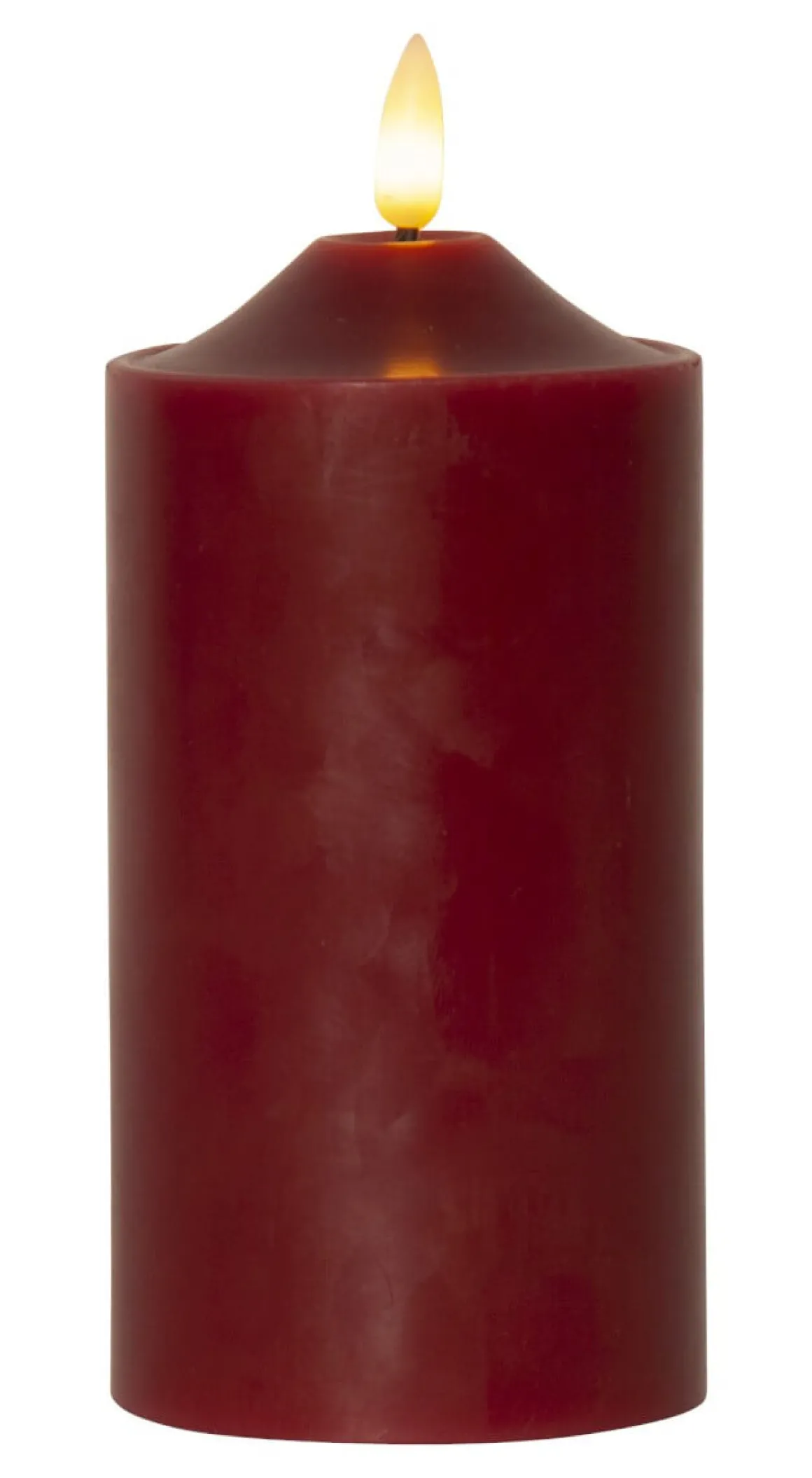 Flamme blockljus är ett vaxljus i mörkröd färg från Star Trading. Ljusets storlek är ca 7,5cm i diameter och höjden inklusive låga är ca 17cm. Detta batteridrivna ljus blir en vacker dekoration både ensam och i grupp ihop med övriga ljus från star tradings Flamme serie. Den har självklart timerfunktion och när brytaren är på timerläget lyser ljuset i ca 30 dagar med en vacker realistisk låga i härligt varmvitt ljus. Den drivs av 2 AA batterier, dessa ingår ej.