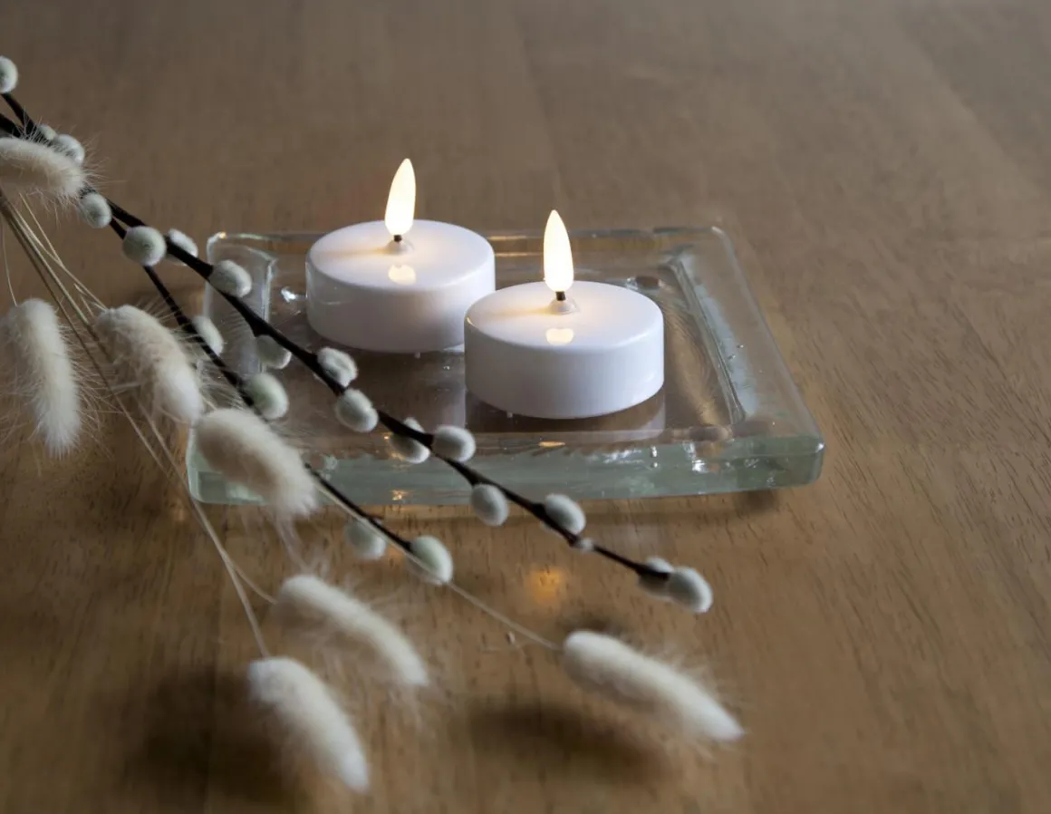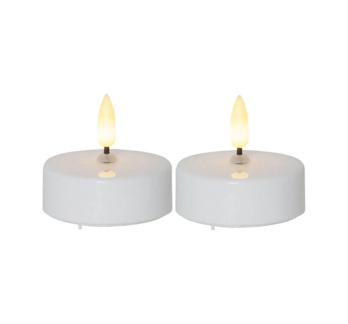 Mysiga värmeljus som säljs i 2-pack med en diameter på 58mm. Lyser med flammande varmvitt sken i som matchar övriga produkter i Flamme serien och har inbyggd timer.