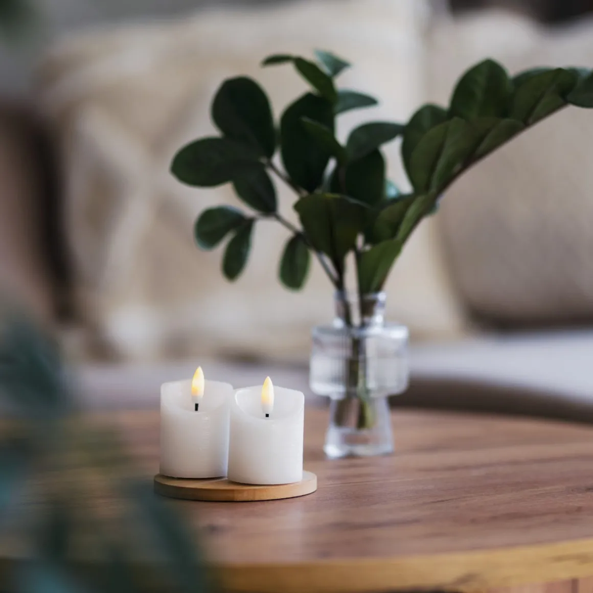 2-pack votivljus med mycket naturtrogen låga som lyser med varmvitt sken. Givetvis har de en inbyggd timer som gör det enkelt för dig att ställa in när du vill att de ska lysa.