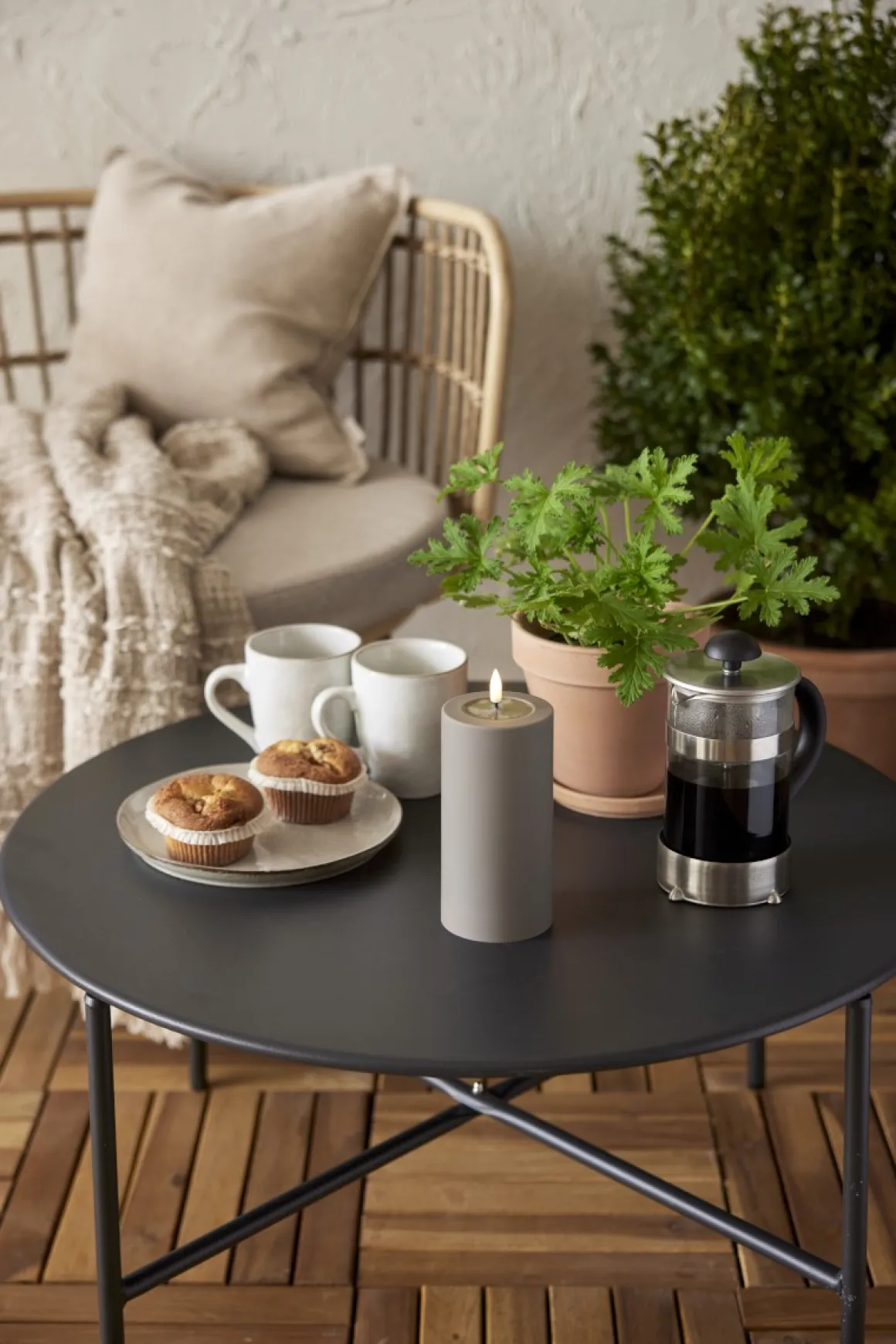 Flamme Soft Mullvad batteriljus med naturtrogen Flamme-låga lyser i 1000 timmar. Tillverkat i plast med sammetslen yta och blank vaxliknande nedsänkning för realistisk look. Mått: 7,5 cm diameter, 15 cm hög (17,5 cm med låga). Perfekt som dekoration, inomhus eller utomhus, ensam eller i grupp. Inbyggd timer för 6h varmvitt sken. Drivs med 2 AA-batterier (ingår ej). Skapa mysig stämning med Flamme-serien!
