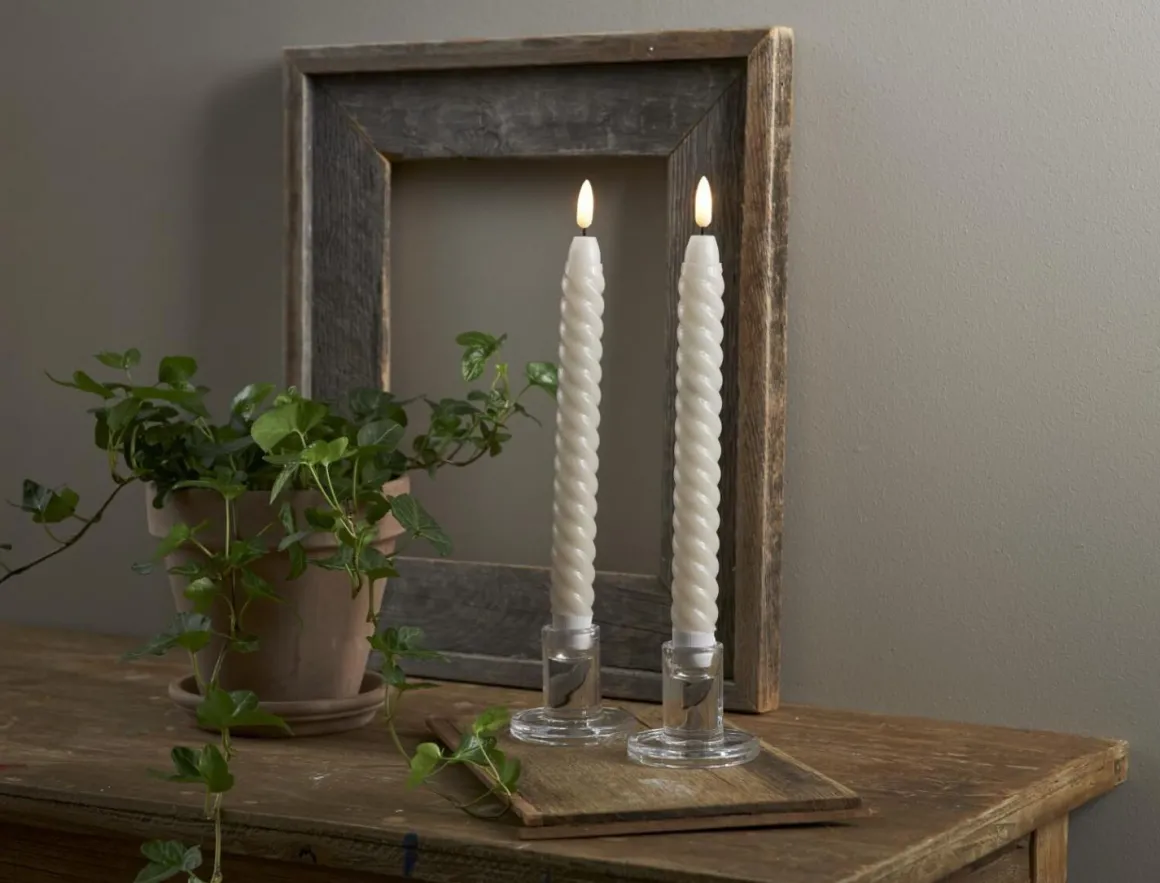 Wohooo! Kolla in denna läckra nyhet! Beige antikljus med twist formad vax i den populära Flamme serien. Den mycket naturtrogna lågan lyser med ett varmvitt mysigt sken. Självklart med inbyggd timer. (15 cm hög)