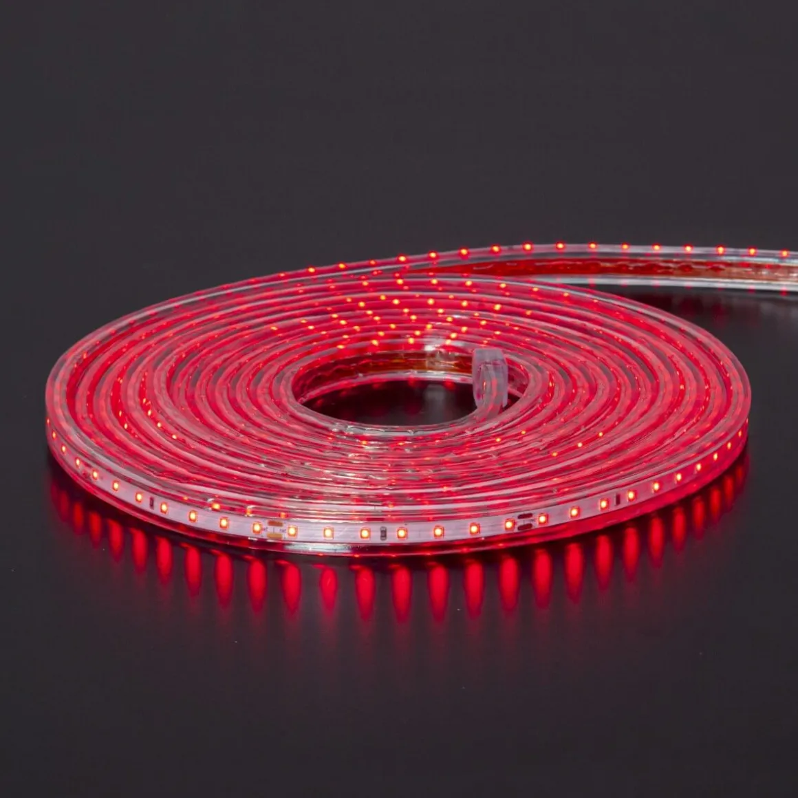 Så läcker ljusslang från Star Trading för utomhusbruk. Slangen är platt istället för rund som de brukar vara och har tätare mellan dioderna för ett jämt och snyggt sken. Denna slingan är 5 meter lång med 480 ljuspunkter. 10 stycken fästen och skruvar ingår i paketet. Som du ser på bilden lyser slingan med ett läckert rött ljus.