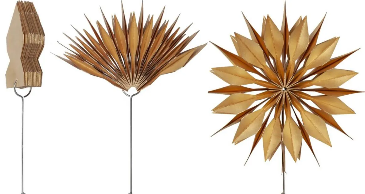 Men kolla in denna söta lilla toppstjärnan då, är hon inte vacker? Flinga i guld pryder verkligen sin plats i toppen av granen både med ljus och utan. Slingan som medföljer virar du runt stjärnan eller använder du den någon annanstans 😉