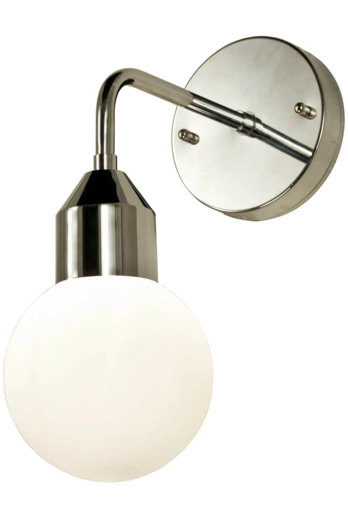 Smidig Badrumslampa med ordentligt med ljus i förhållande till sin storlek, när enkelhet är bäst är Florens ett givet val. Här ser du Florens med kromad stomme och opalvitt glas.