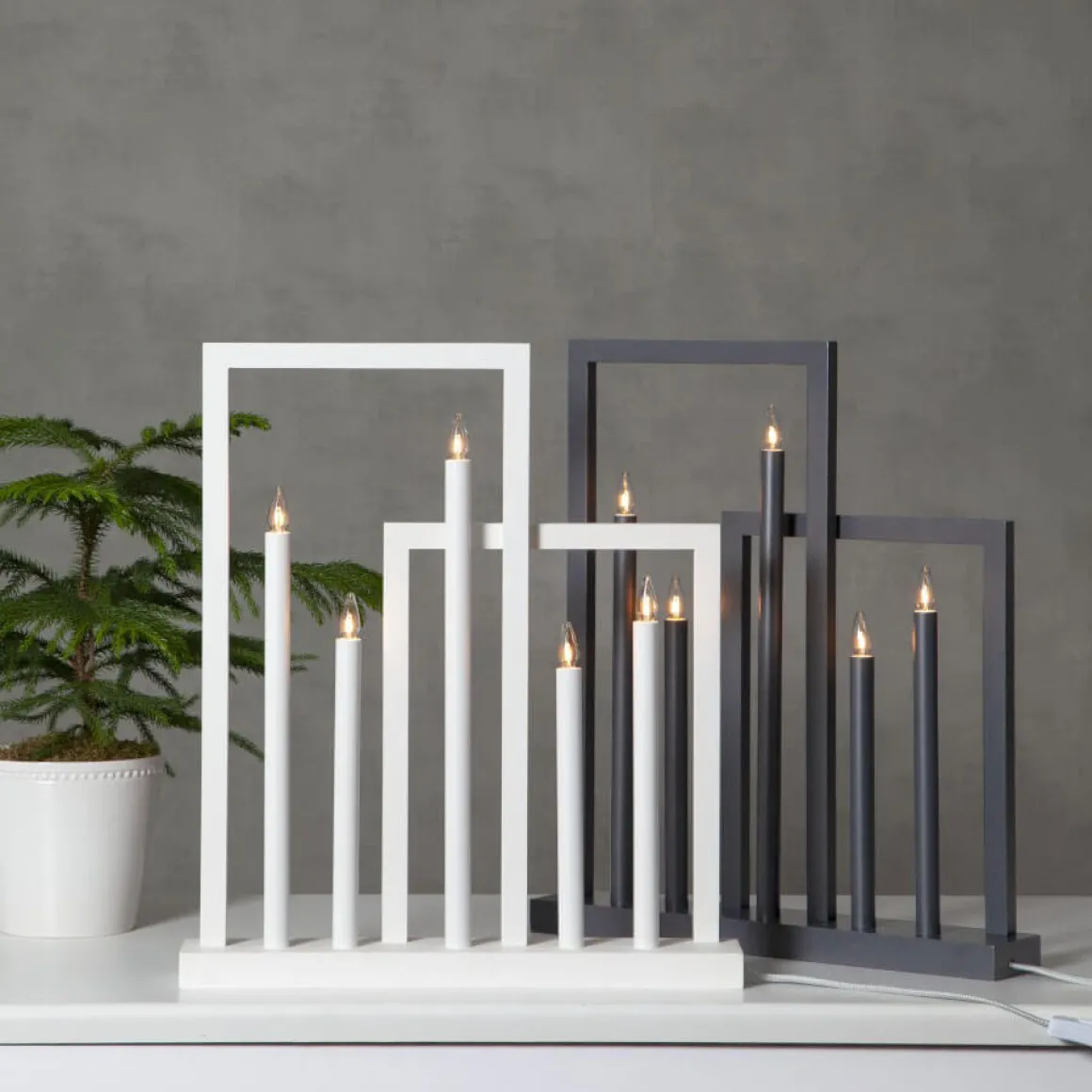 Så härlig ny ljusstake med spännande fräck design. Ramar och bas i trä med ljuspipor i metall i olika höjder gör den till ett blickfång i ditt hem. Här ser du Frame i vitt.
