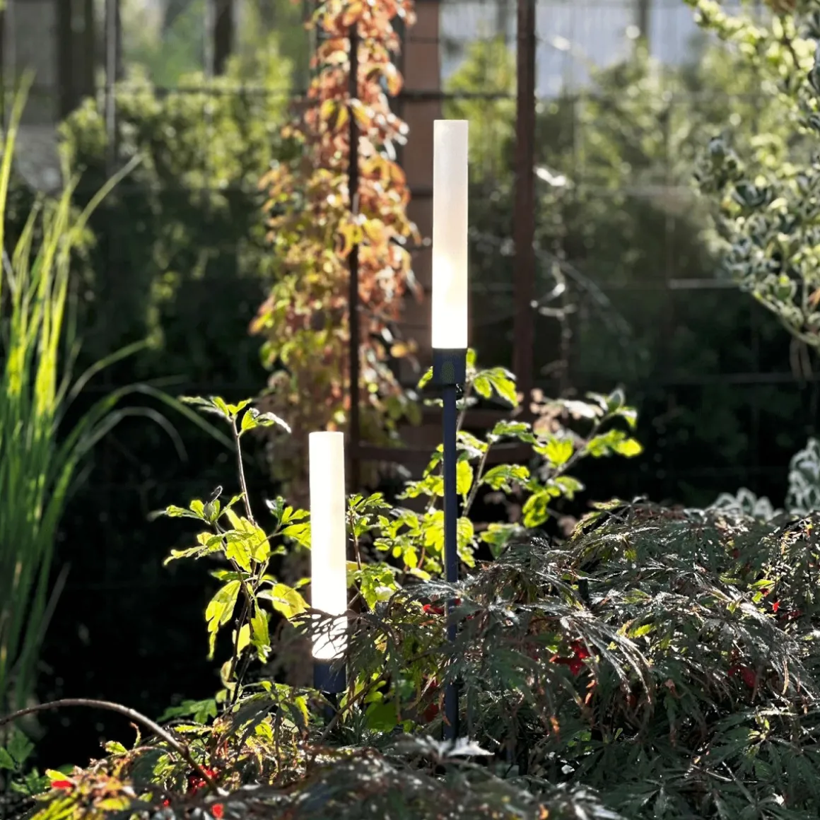 Frost är ett elegant set av två ljuspelare i mörkgrå aluminium som förvandlar dina utomhusmiljöer med sitt varma, mjuka ljus[Läs mer]