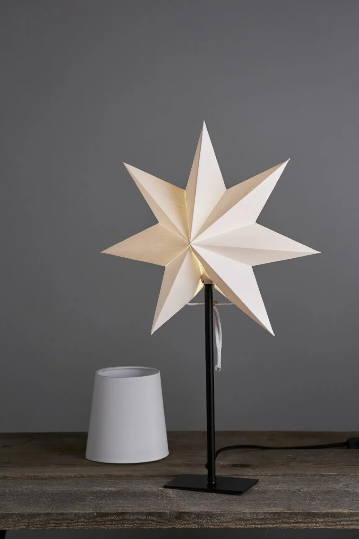 Totto är en strålande kandidat för alla höga fönster där ute! Här med vit fot samt höjd på hela 80 cm och en mindre stjärna på toppen! Toppen helt enkelt!