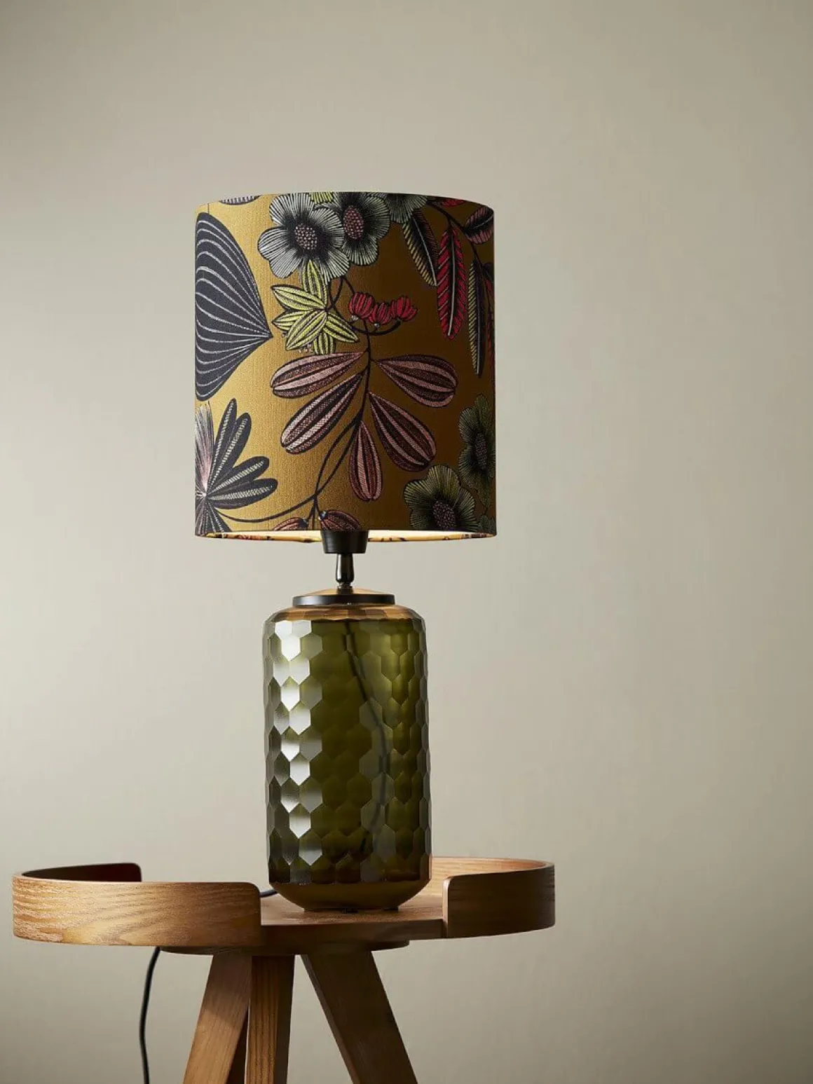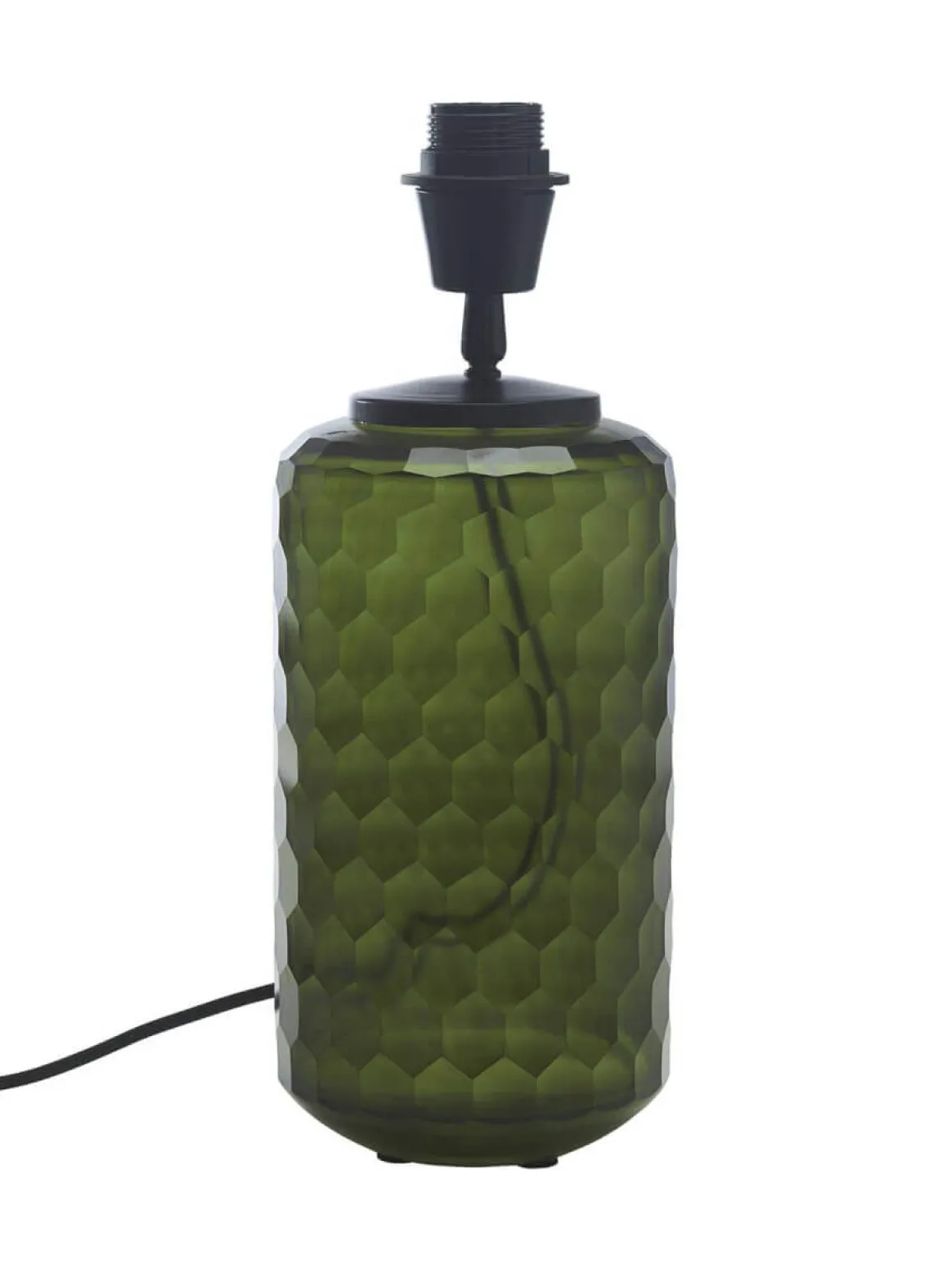 Gabby Lampfot i handblåst grönt glas med Honeycomb mönster från PR-Home. Den djupa gröna färgen i kombination med det mönstrade glaset skapar ett vackert ljusspel i rummet. Metalldetaljer i matt svart och en 2 meter lång svart sladd med strömbrytare. E27 sockel, max 40W. Ljuskälla köpes separat.