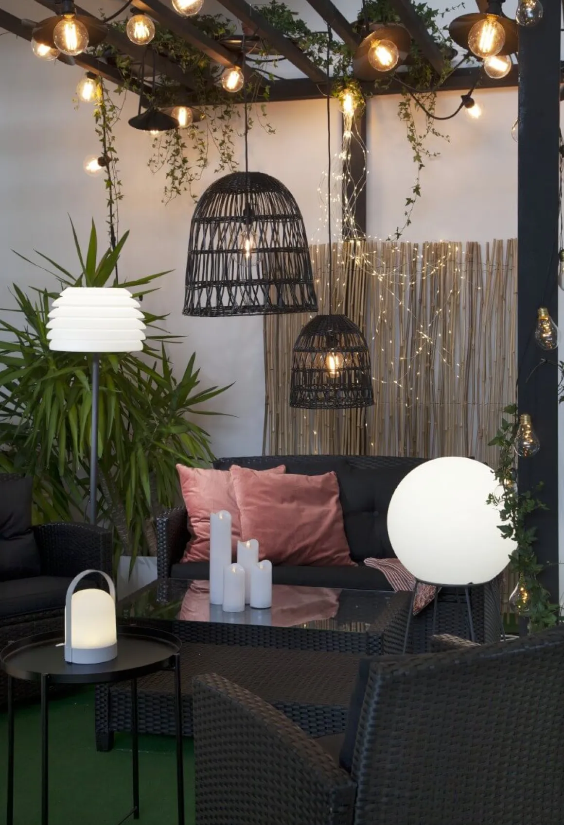 När du vill skapa en inomhuskänsla utomhus är gardenlight rätt serie för dig finns som bordslampa och golvlampa! Svart lampfot med vit skärm. Förändra ljuset med olika typer av ljuskällor med E27 Sockel.