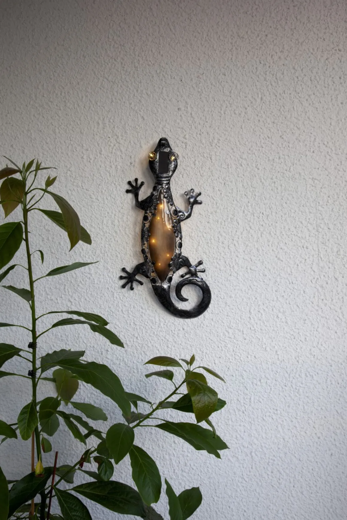Sååå söt liten solcellsdriven ödla från Star Trading, bara montera underverket mot en vägg så hen får lite sol så lyser ödlan upp när mörkret kryper sig på. Vackert!