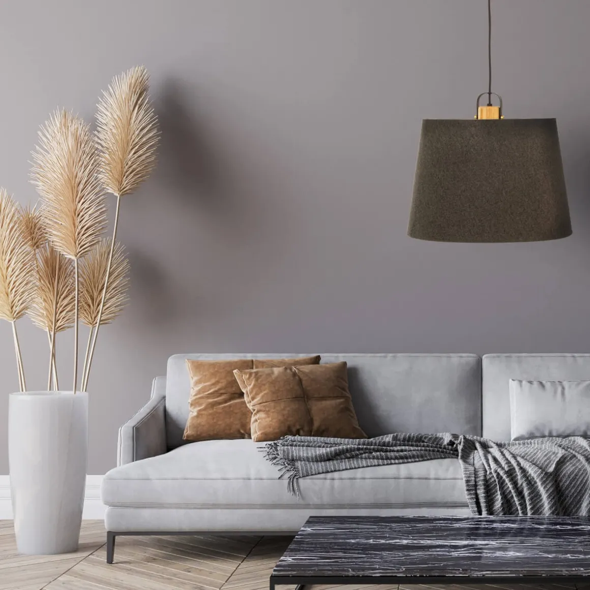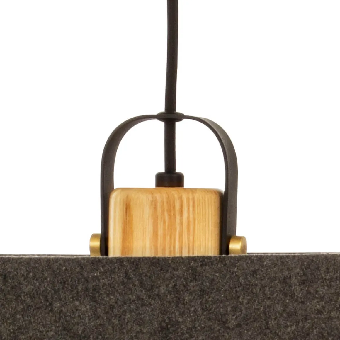 GEILO taklampa är en dekorativ och unik lampa som har en skärm tillverkad av laminerad grå flanell, vilket ger en mjuk och behaglig belysning. Trädetaljer och svart metall ger lampan en modern och industriell känsla, vilket gör den till en idealisk dekorationsföremål för både hem och kontor. Lampans krokupphängning och takkopp i svart plast säkerställer enkel installation.