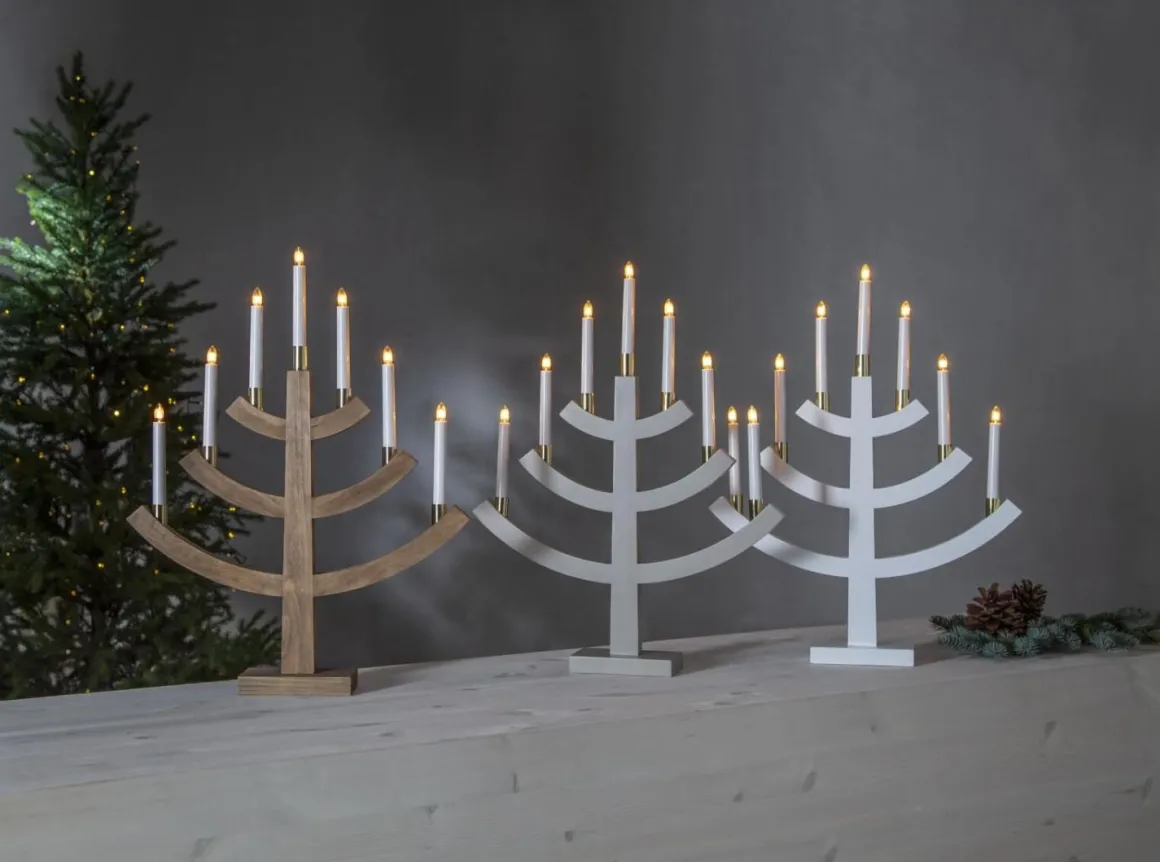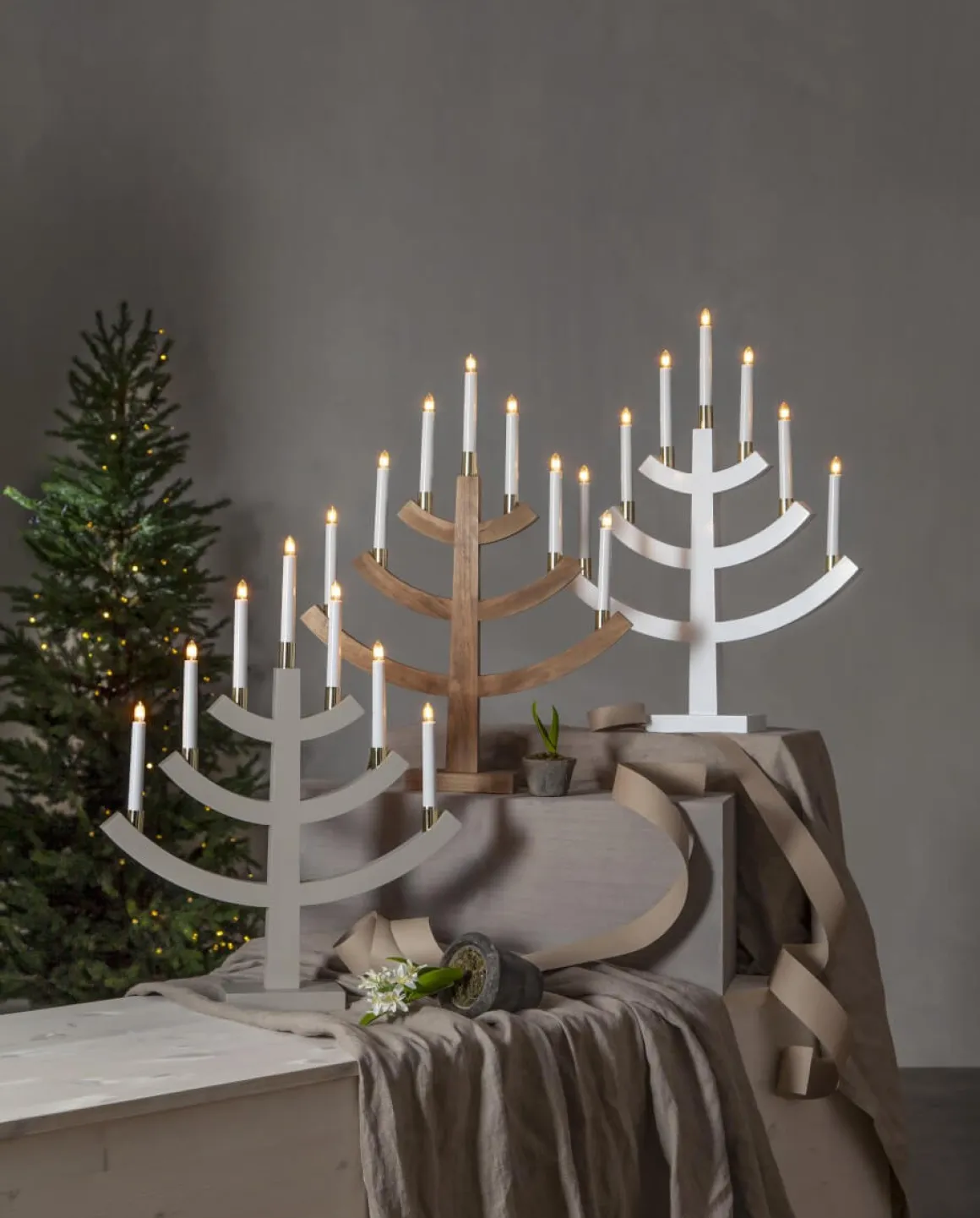 Läcker Beige 7-armad träljusstake med mässingbelagda ljushållare från Star Trading. Super härlig adventsljusstake att dekorera med till jul.
