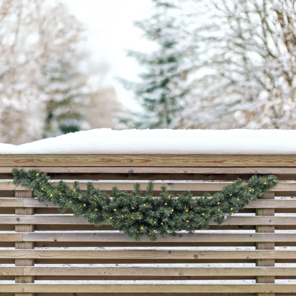Skapa en mysig belysning med denna grönskande girlang med 40 varmvita LED-ljus. Den har inbyggd timerfunktion och kan justeras i längd (150 cm i rak form) för att passa dina behov. Drivs av 3xAA-batterier (ej inkluderade), perfekt för både inomhus- och utomhusbruk. Idealisk för att skapa stämning vid fester eller som juldekoration.