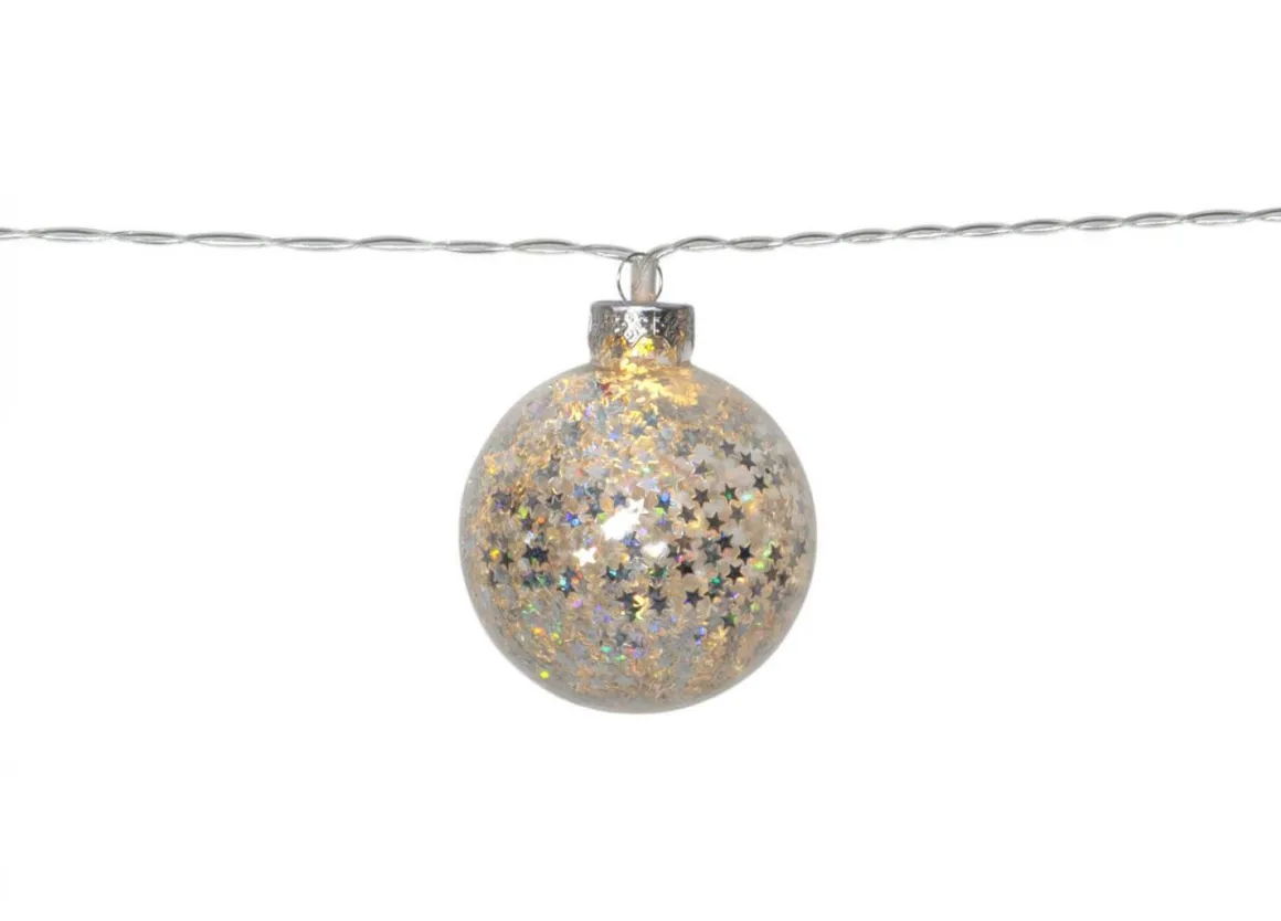 Ljusslinga fint dekorerad med 10 glasbollar med läckra silvriga paljetter inuti. Dekorativ inredning som ger ett mysigt sken i ditt hem