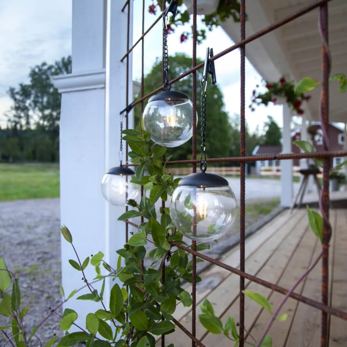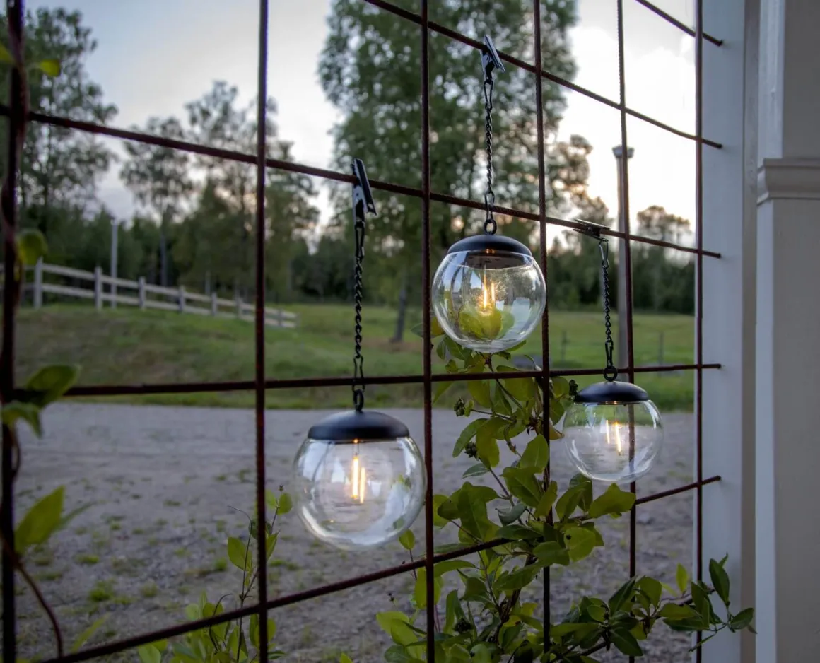 Populära Globus har nu äntligen kommit med transparent PS plast och bytt namn till Globe. Globe passar perfekt för träd eller balkonger. 3 pack solcellsbollar med kedja och krokodilklämma. Placera bollarna så solen kan nå panelen för optimal laddning av det medföljande batteriet.